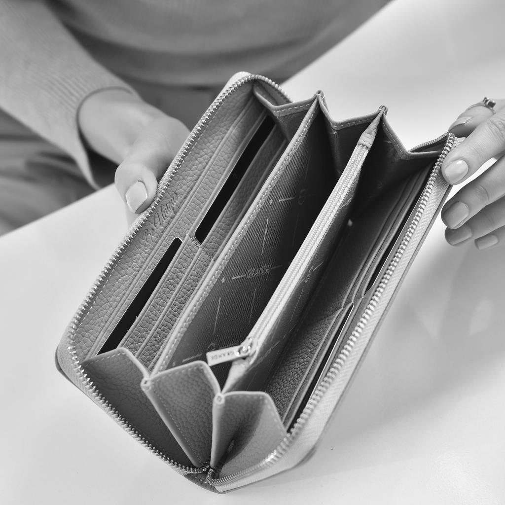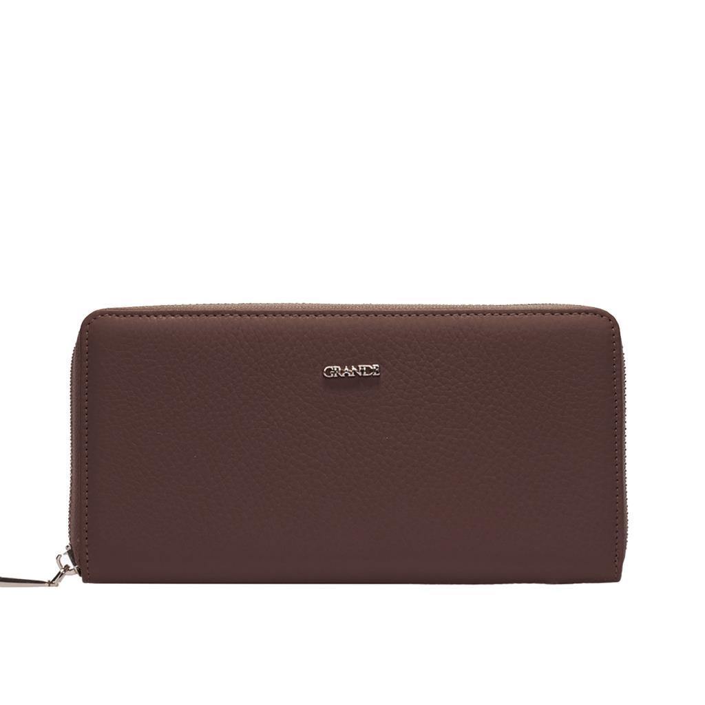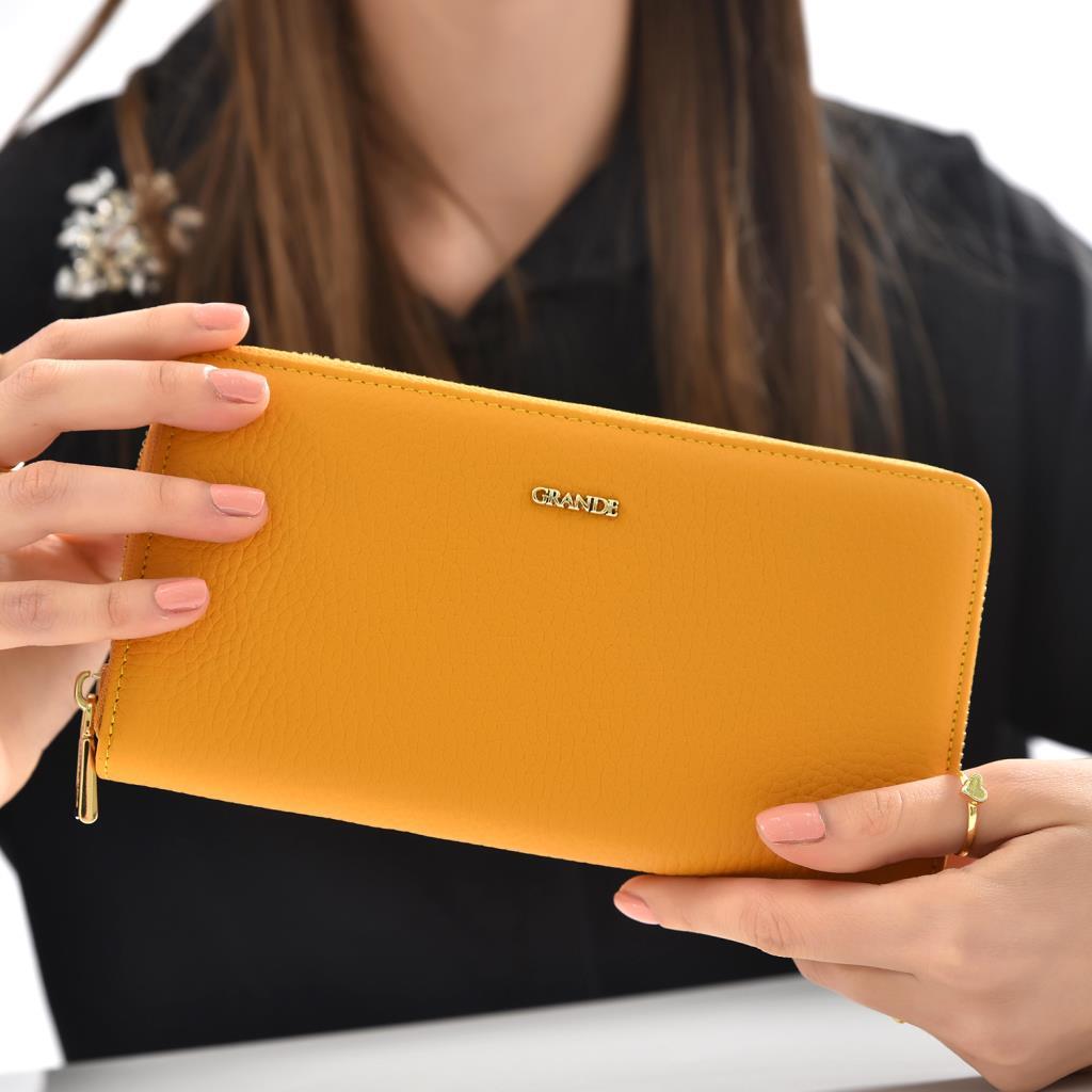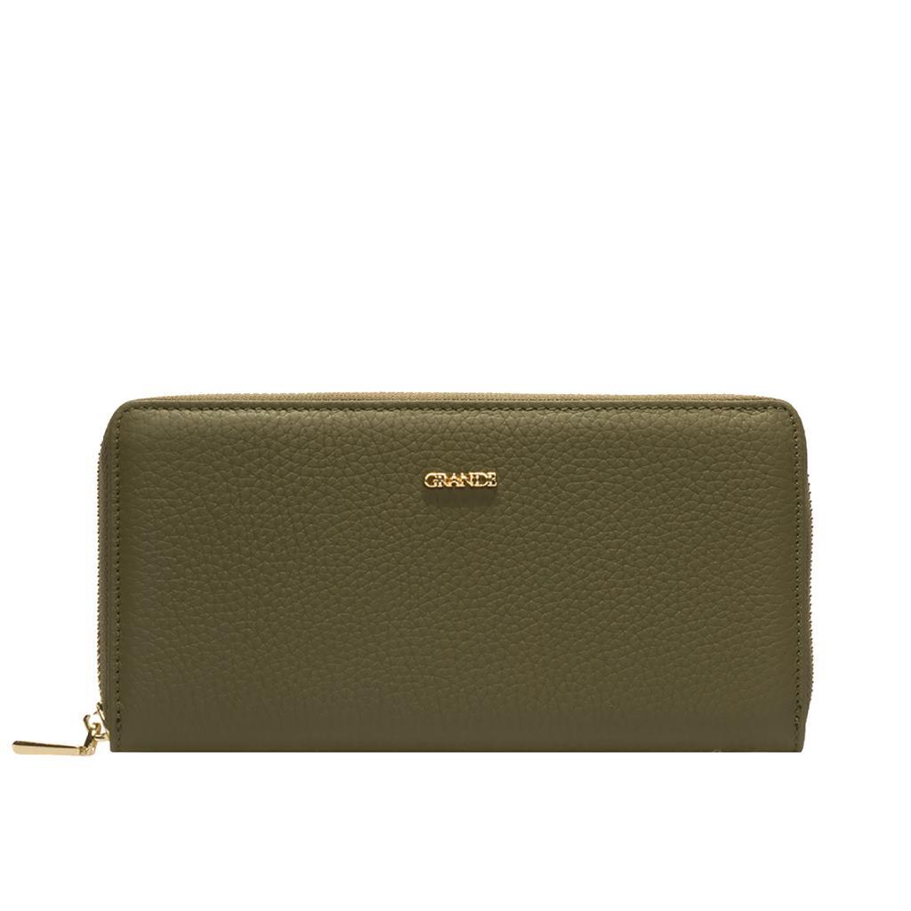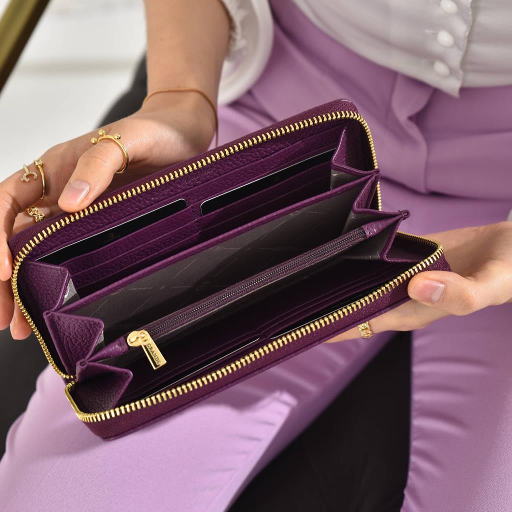 Grande Gerçek Deri Fermuarlı Kadın Cüzdanı Büyük Boy Hakiki Deri Petrol
