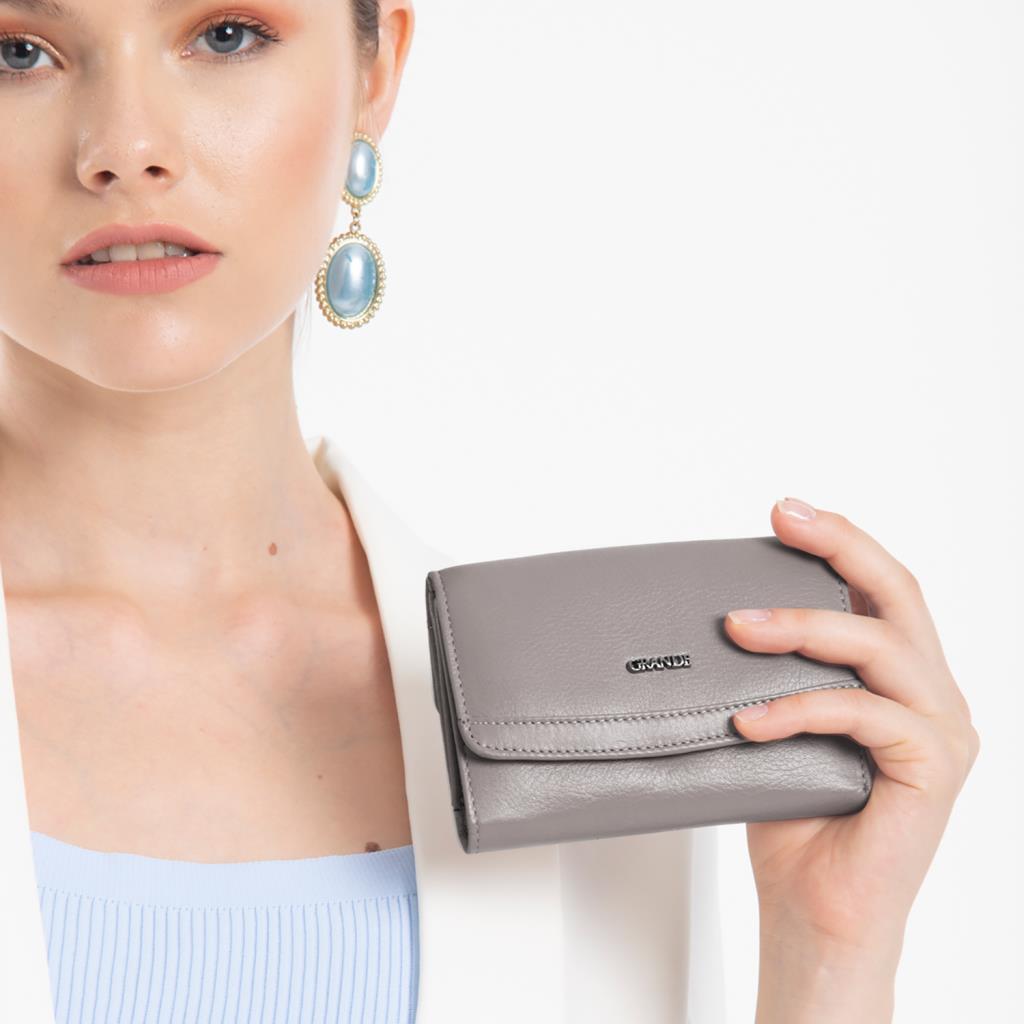 Grande Gerçek Deri Kadın Cüzdanı Hakiki Deri Normal Boy Mürdüm