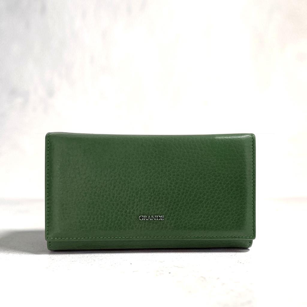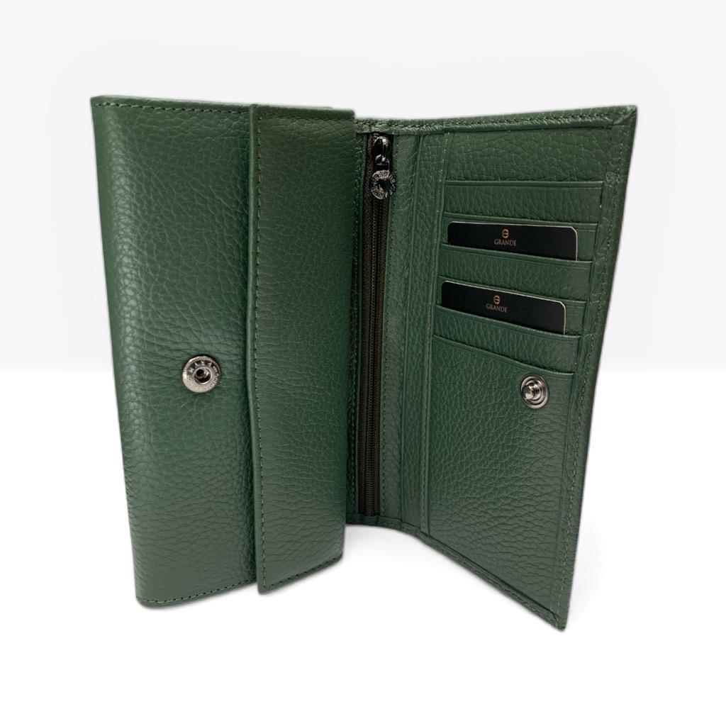 Grande Gerçek Deri Kadın Cüzdanı Orta Boy Hakiki Deri Yeşil