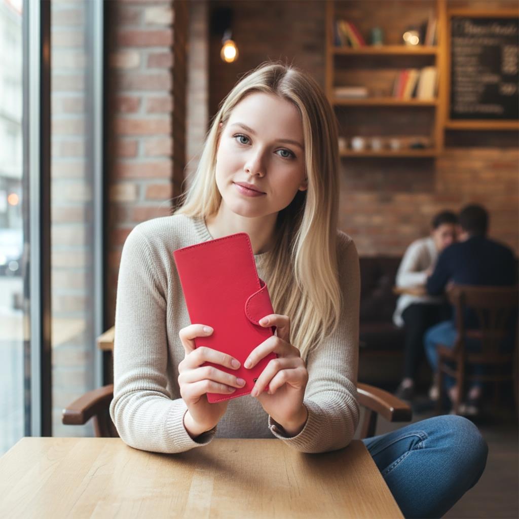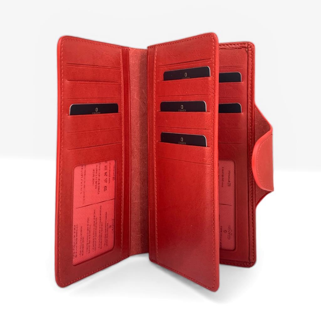 Grande Gerçek Deri Uniseks Cüzdan İnce Tasarım Büyük Boy Fuşya