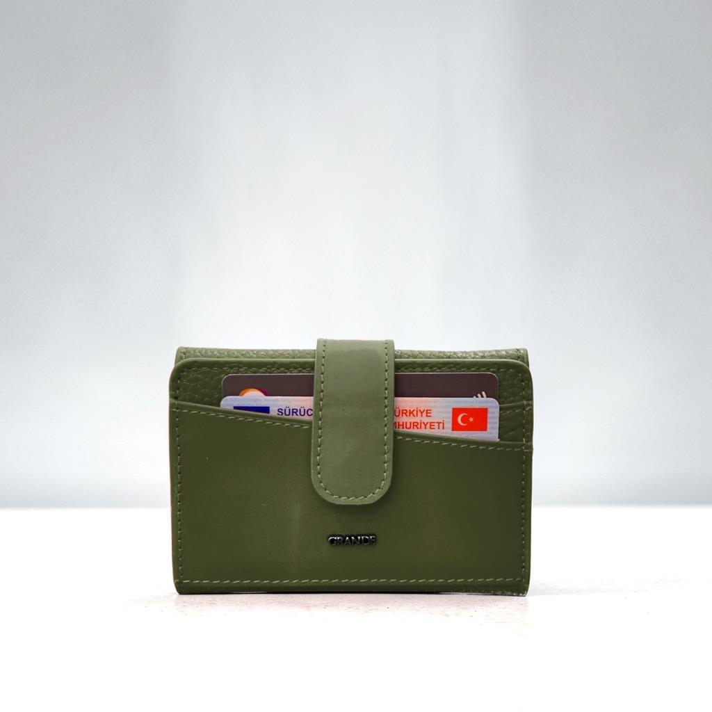 Grande Hakiki Deri Küçük Boy Kartlıklı Uniseks Cüzdan LcsYeşil