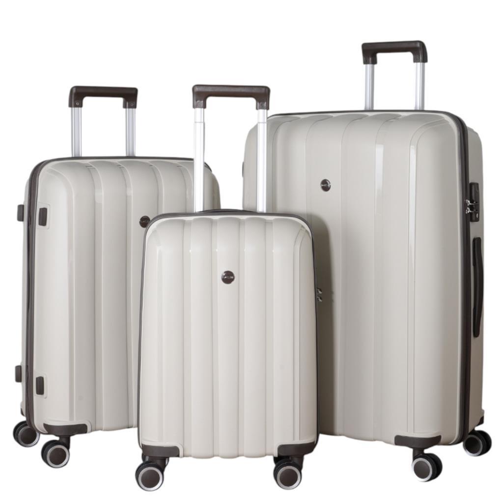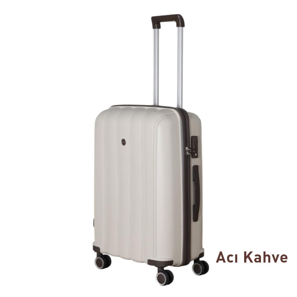 MÇS 3lü Set Kırılmaz Silikon Seyahat Valizi Bavulu V305 Kemik/AcıKahve