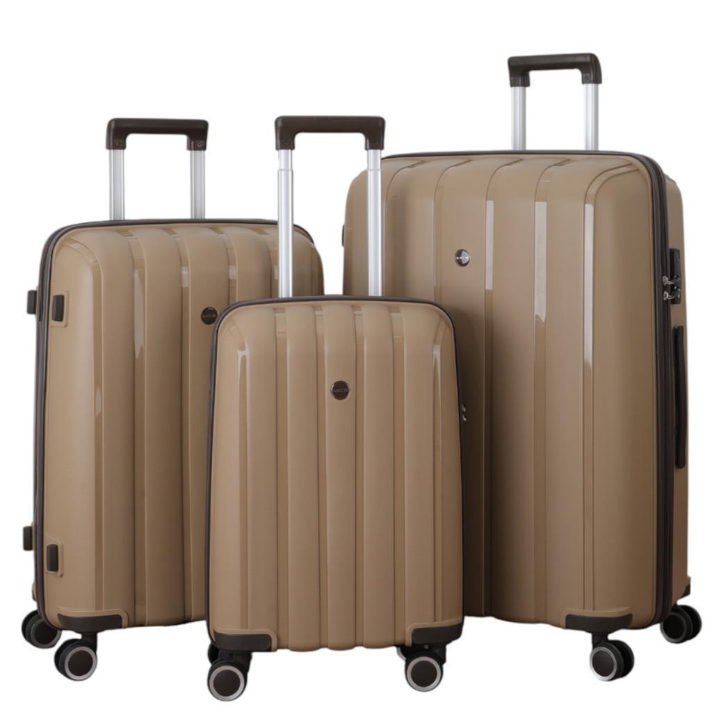 MÇS 3lü Set Kırılmaz Silikon Seyahat Valizi Bavulu V305 Şampanya/AcıKahve