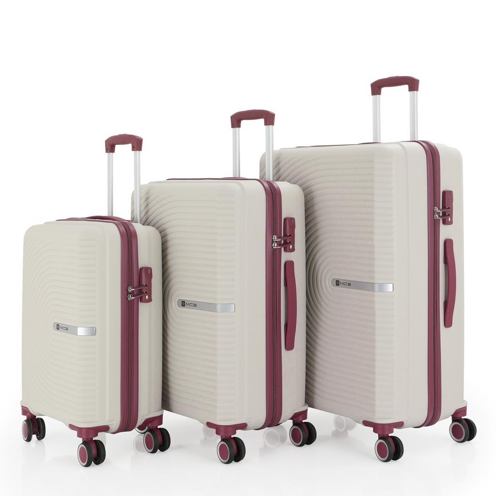 MÇS 3lü Set Kırılmaz Silikon Seyahat Valizi Bavulu V374 Kemik/Mürdüm