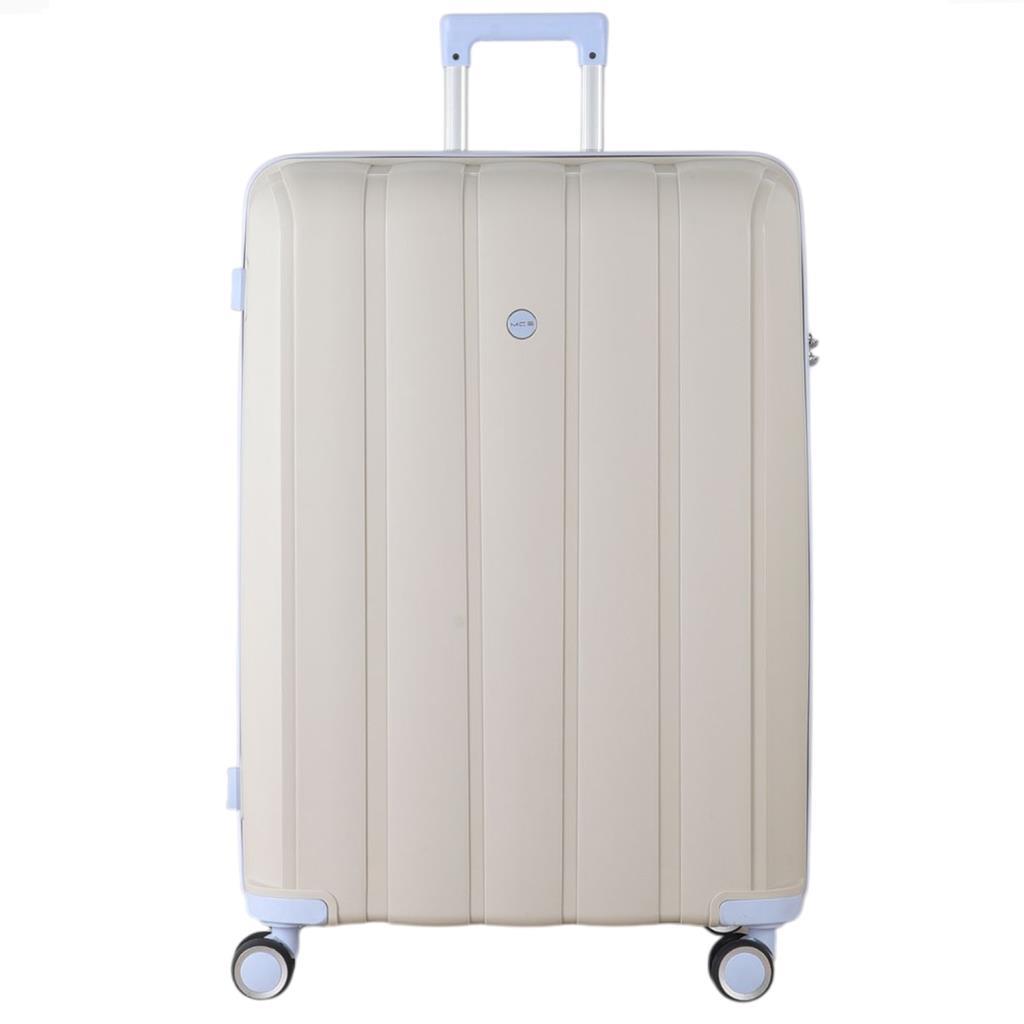 MÇS Bavul Büyük ve Kabin 2li Set Kırılmaz Silikon Valiz V305 Kemik/BebeMavisi