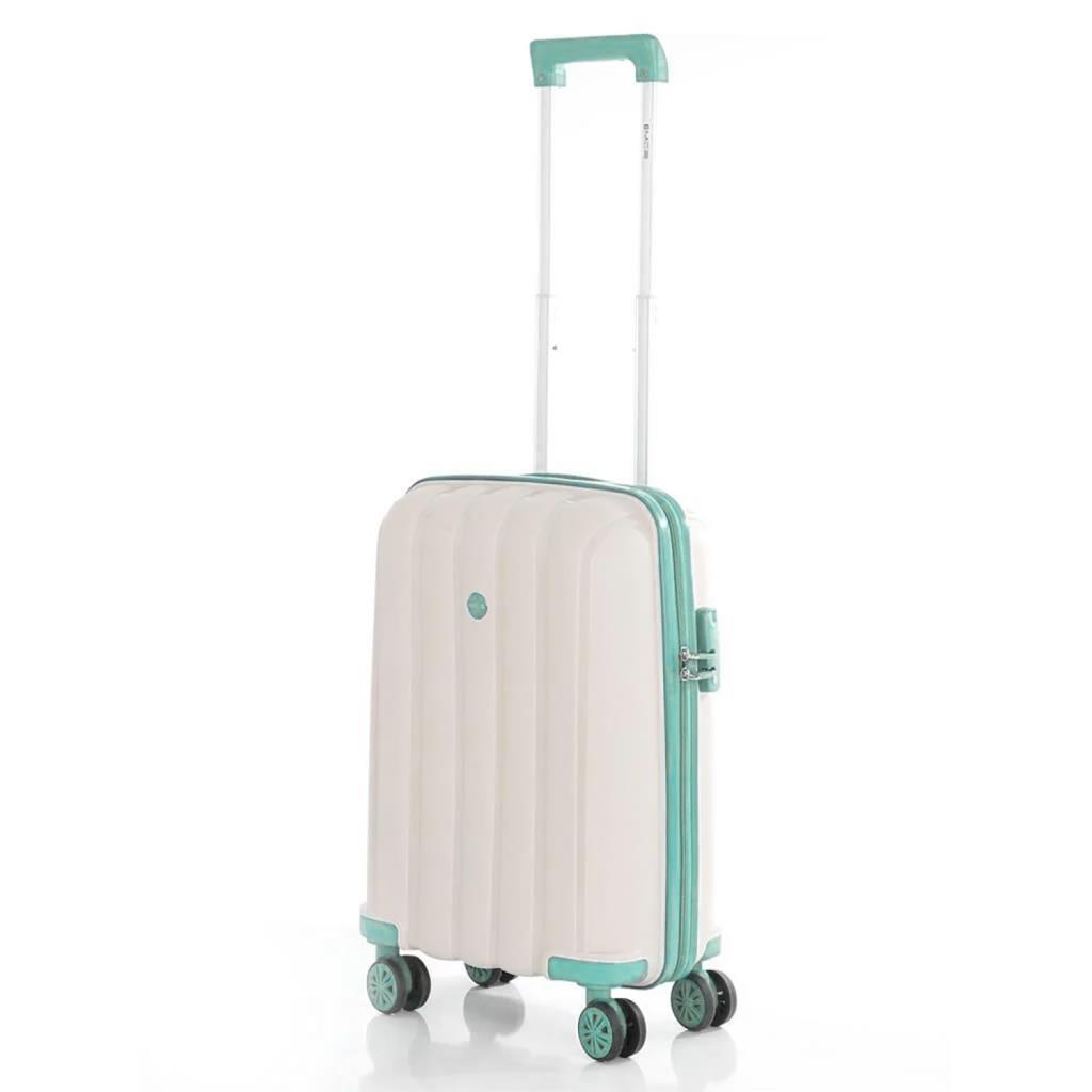MÇS Bavul Büyük ve Kabin 2li Set Kırılmaz Silikon Valiz V305 Kemik/SuYeşili