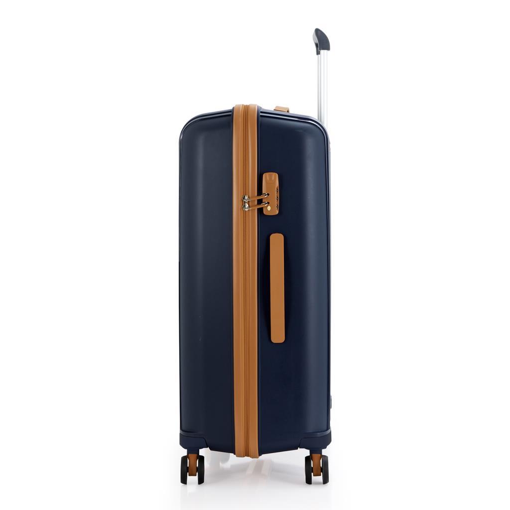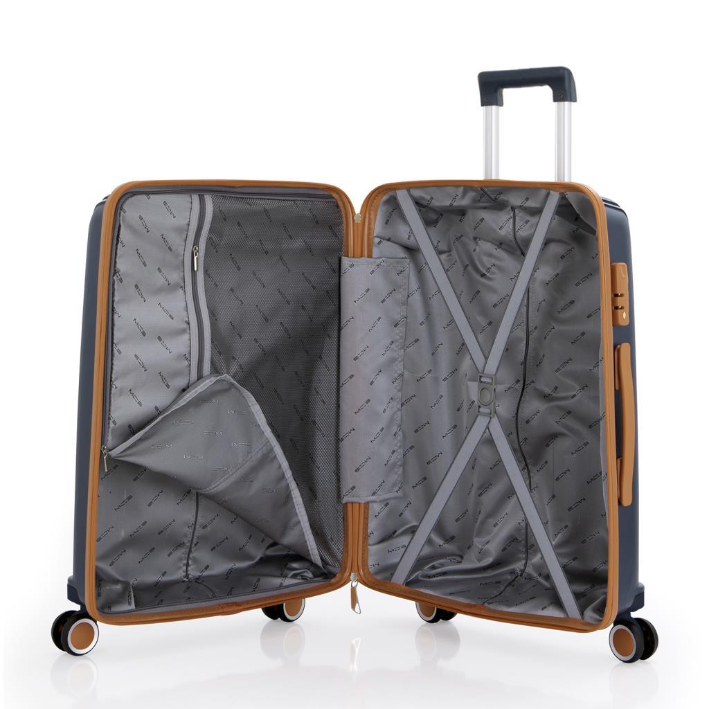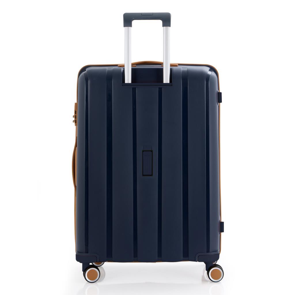 MÇS Bavul Büyük ve Kabin 2li Set Kırılmaz Silikon Valiz V305 Lacivert/Hardal