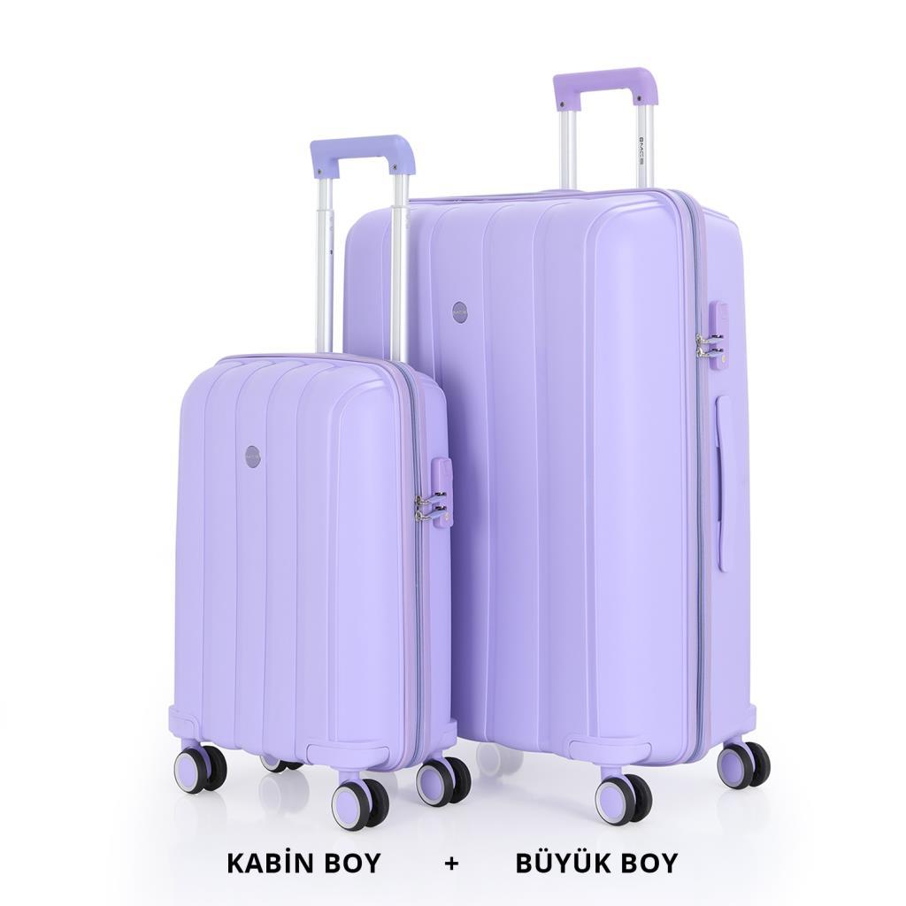 MÇS Bavul Büyük ve Kabin 2li Set Kırılmaz Silikon Valiz V305 Lila