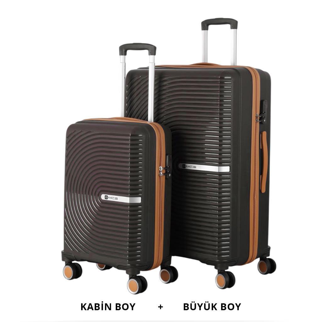 MÇS Bavul Büyük ve Kabin 2li Set Kırılmaz Silikon Valiz V374 AcıKahve/Şampanya