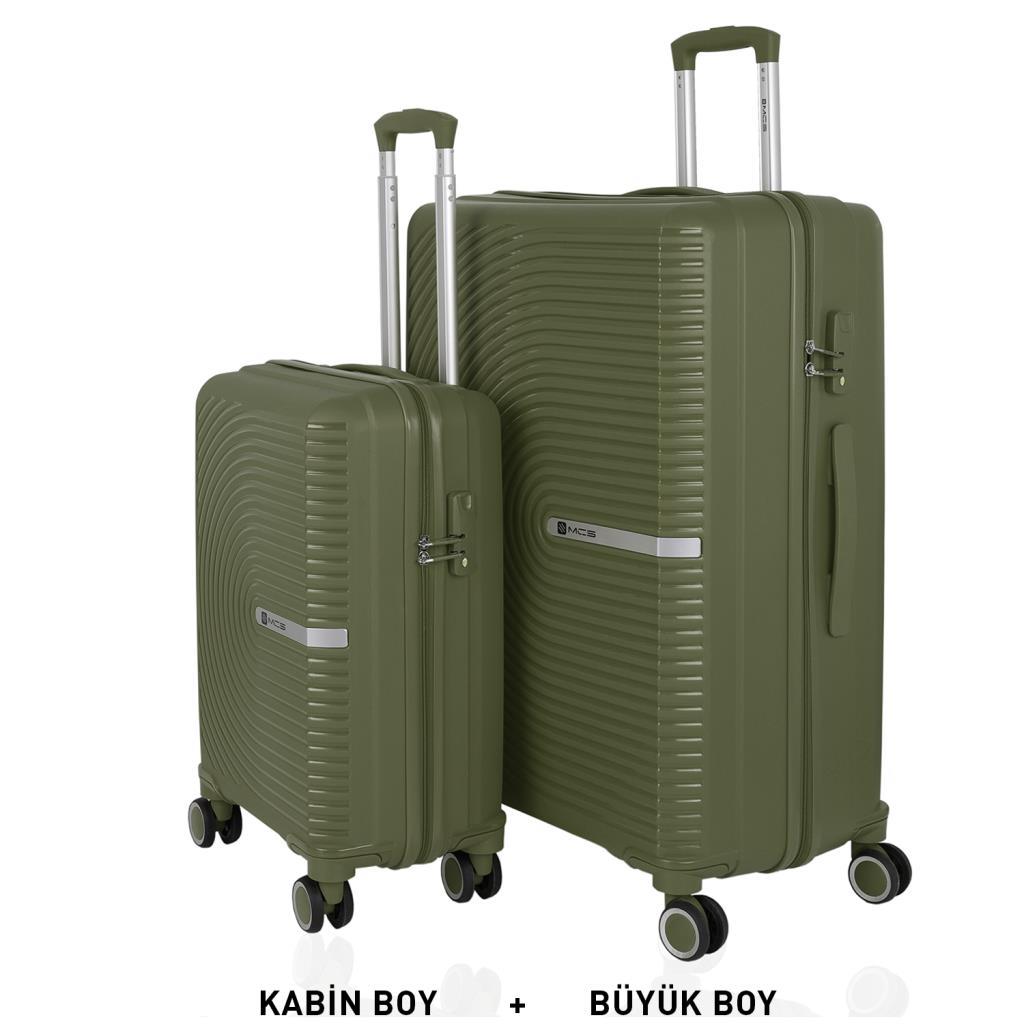 MÇS Bavul Büyük ve Kabin 2li Set Kırılmaz Silikon Valiz V374 Haki