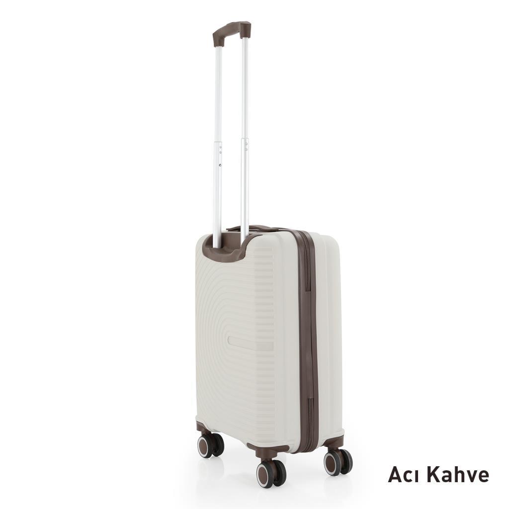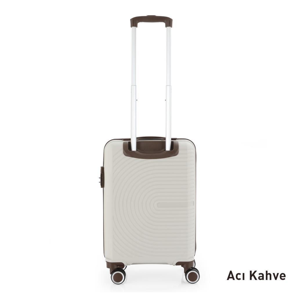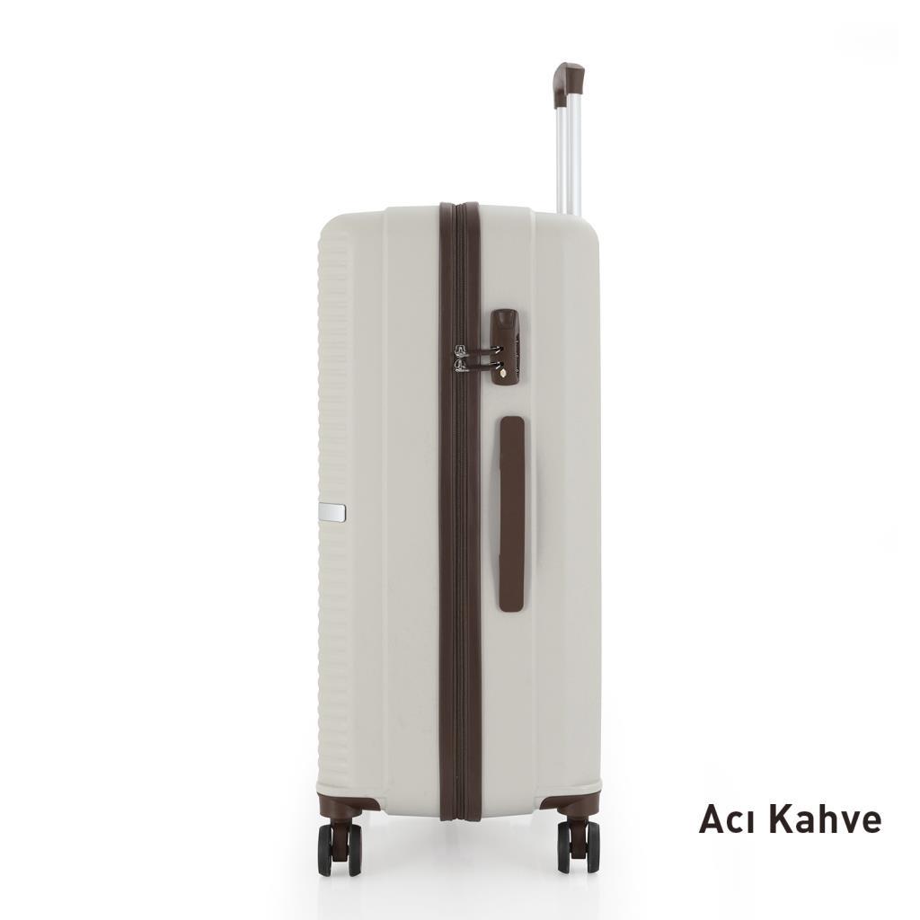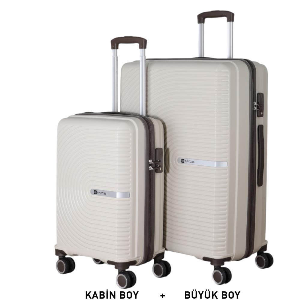 MÇS Bavul Büyük ve Kabin 2li Set Kırılmaz Silikon Valiz V374 Kemik/AcıKahve