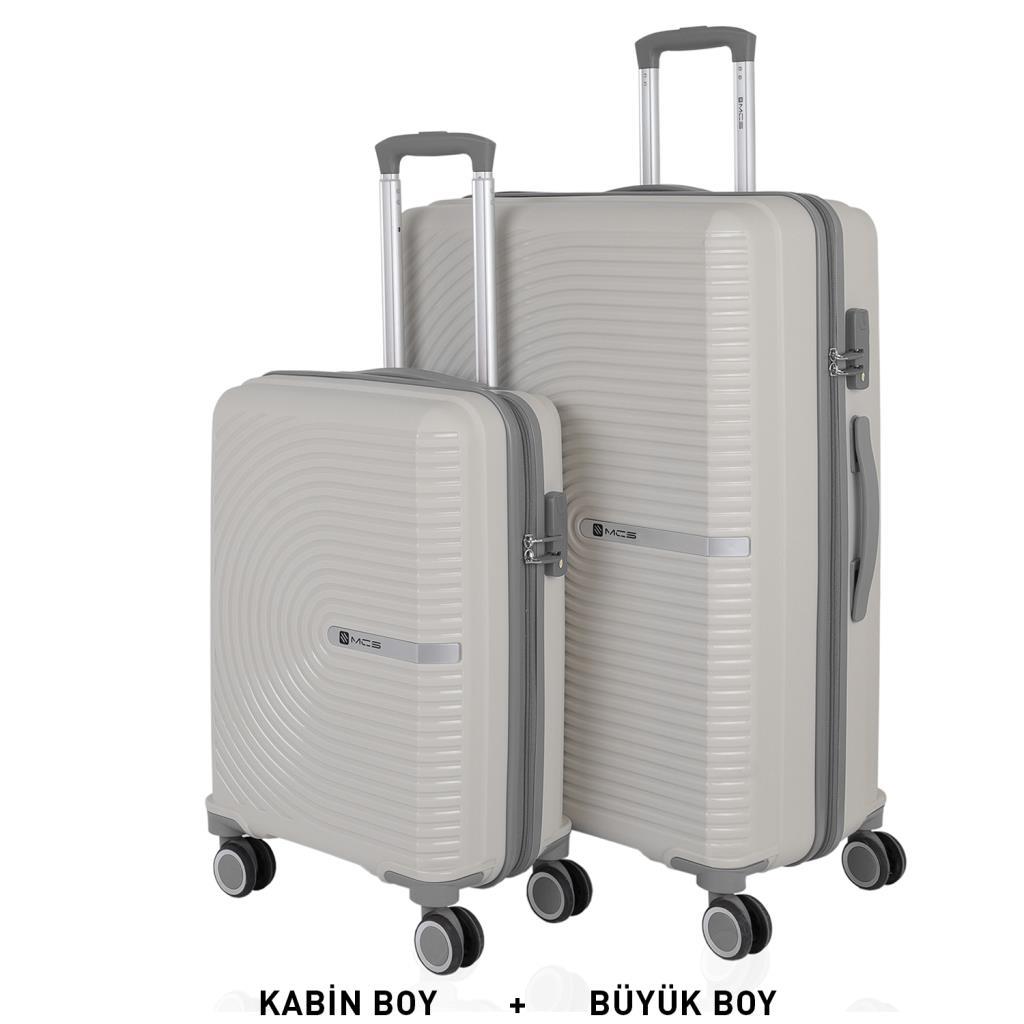 MÇS Bavul Büyük ve Kabin 2li Set Kırılmaz Silikon Valiz V374 Kemik/Gri