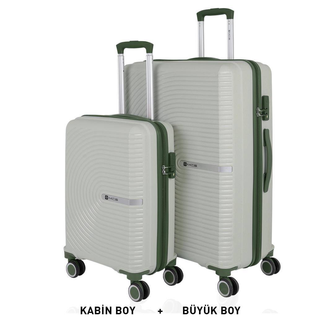 MÇS Bavul Büyük ve Kabin 2li Set Kırılmaz Silikon Valiz V374 Kemik/Haki