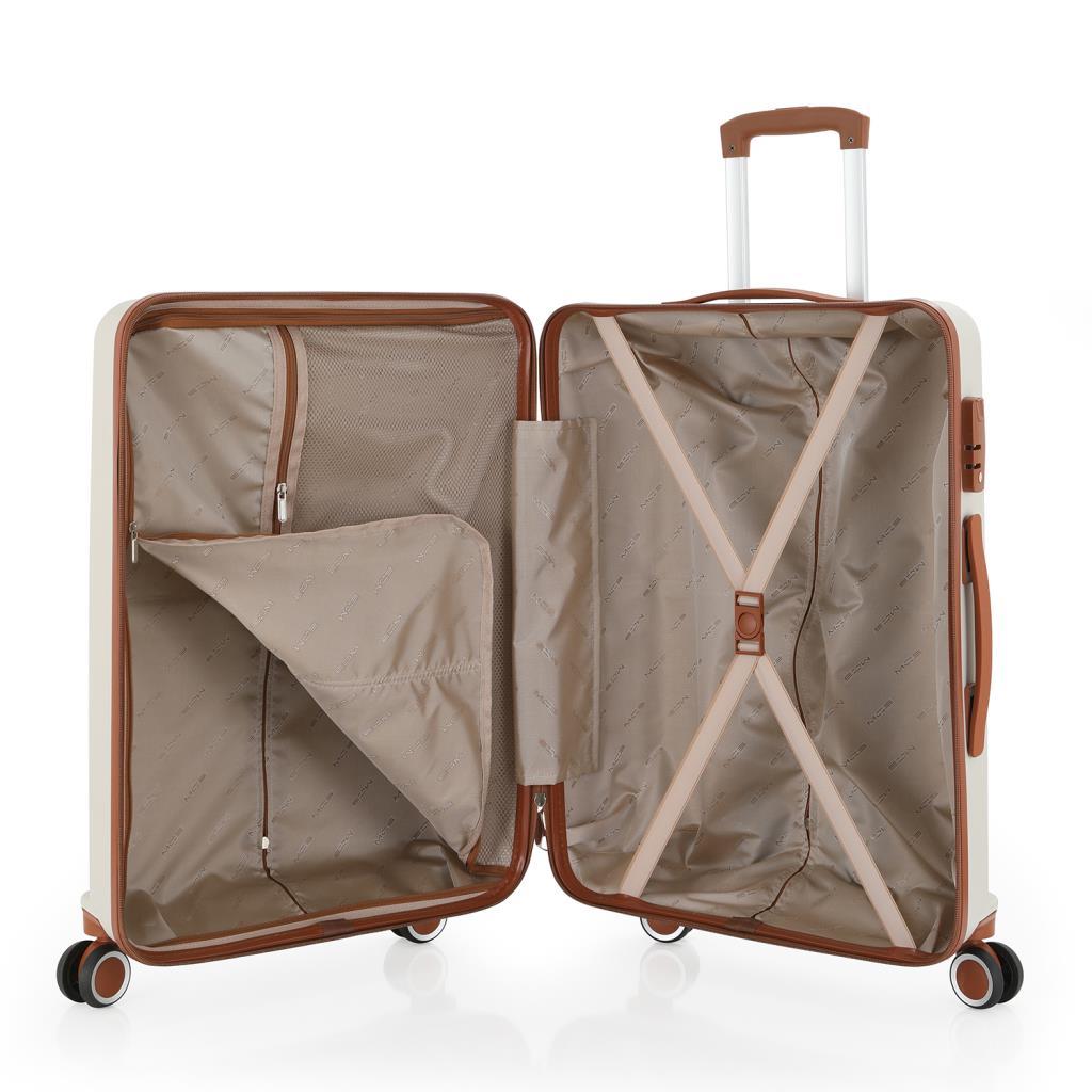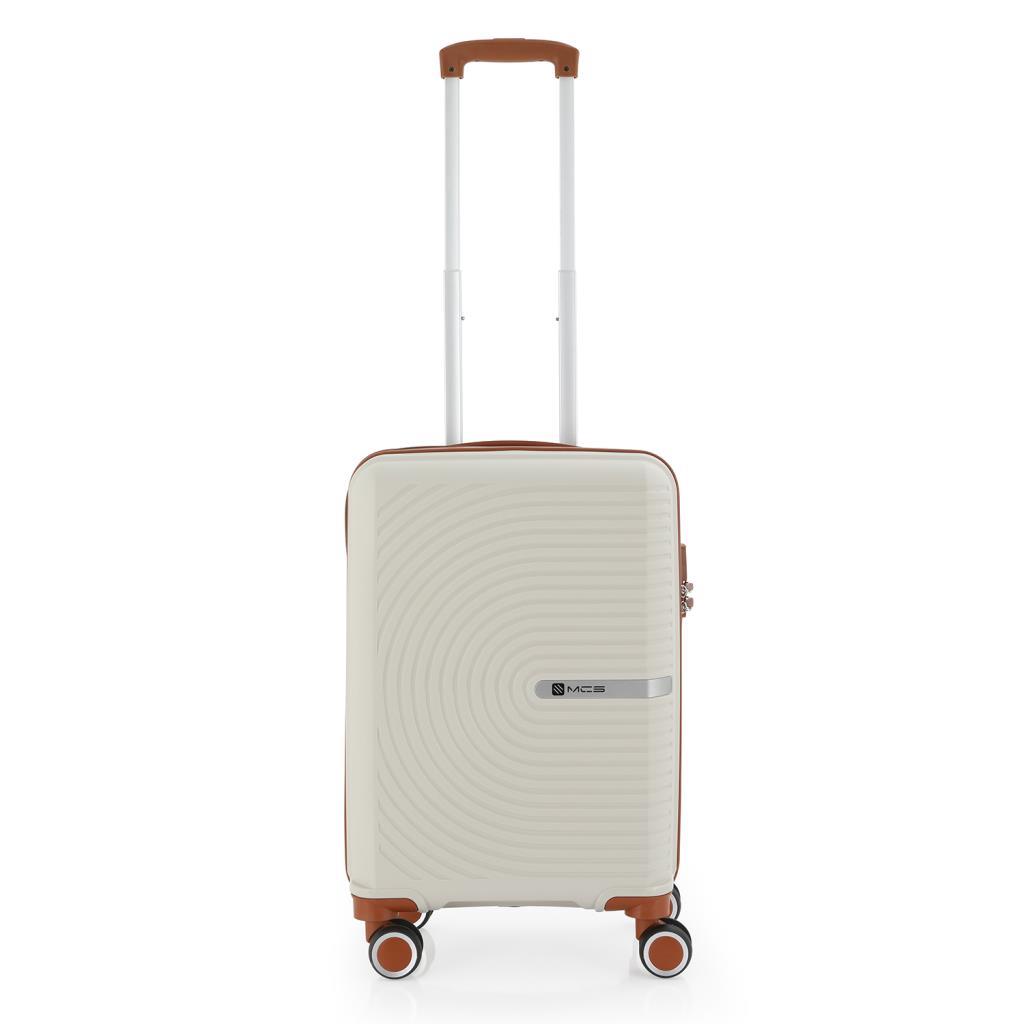 MÇS Bavul Büyük ve Kabin 2li Set Kırılmaz Silikon Valiz V374 Kemik/Kahverengi