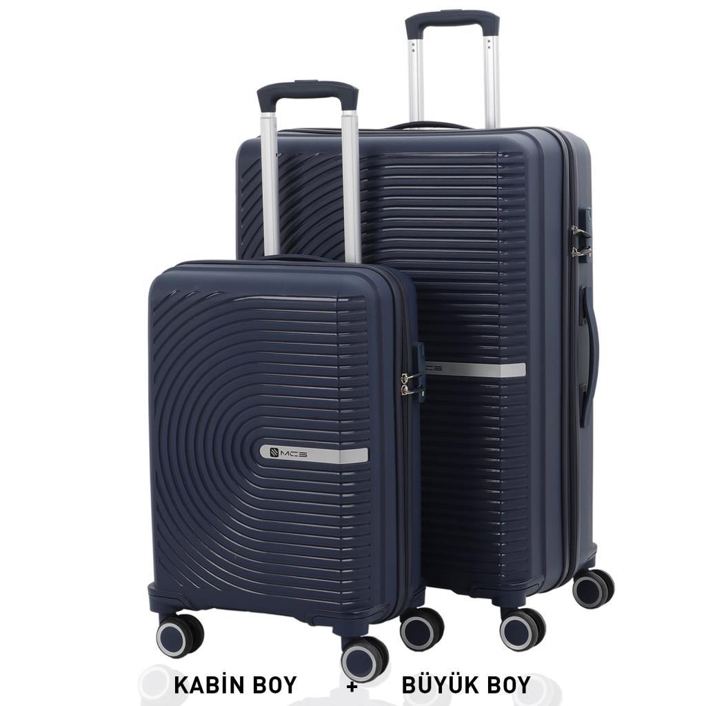 MÇS Bavul Büyük ve Kabin 2li Set Kırılmaz Silikon Valiz V374 Lacivert