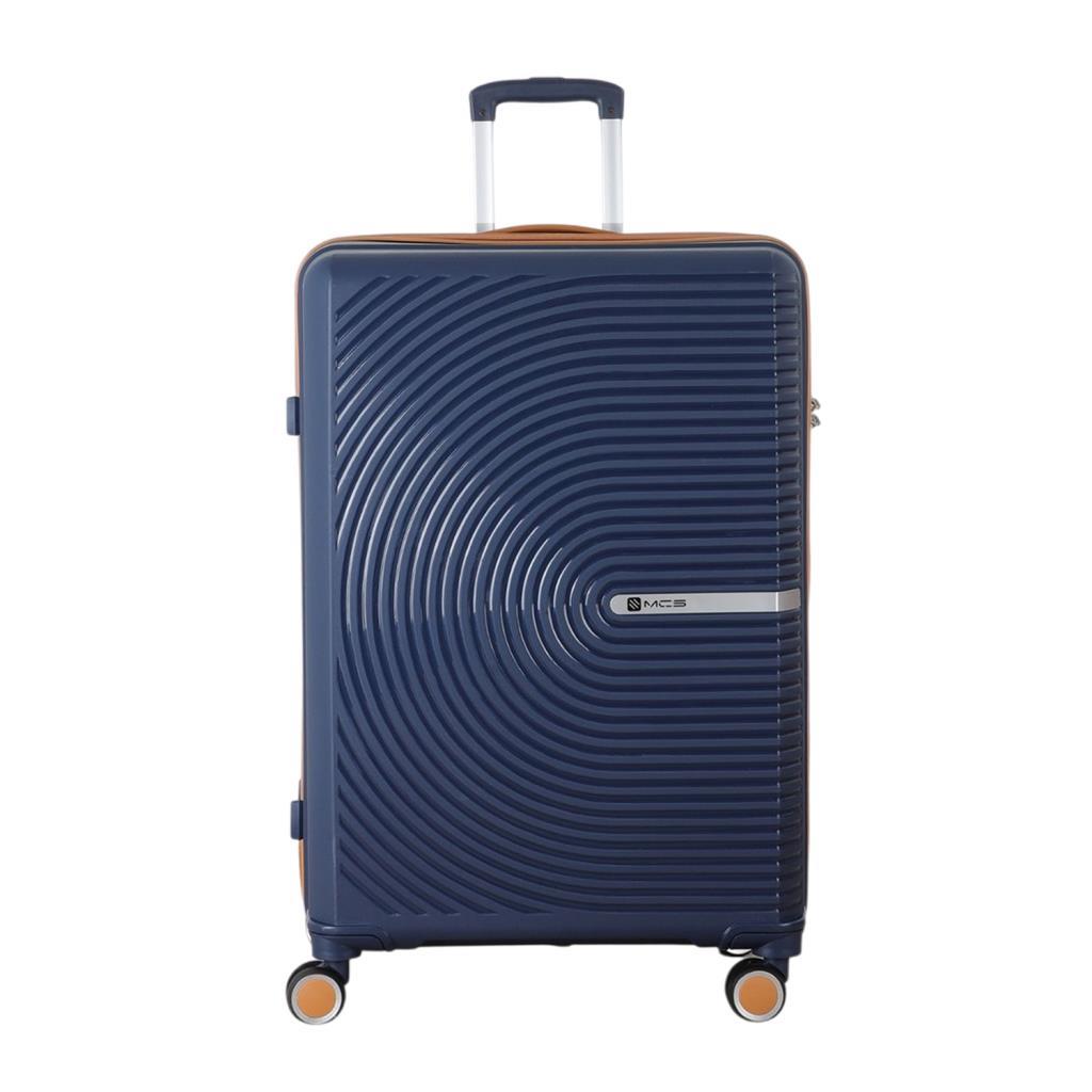 MÇS Bavul Büyük ve Kabin 2li Set Kırılmaz Silikon Valiz V374 Lacivert/Hardal