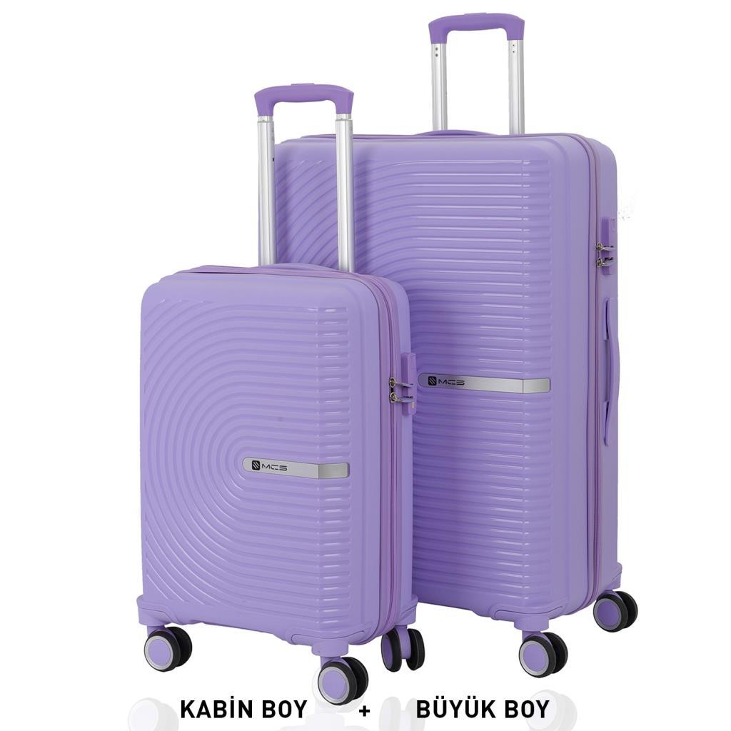 MÇS Bavul Büyük ve Kabin 2li Set Kırılmaz Silikon Valiz V374 Lila