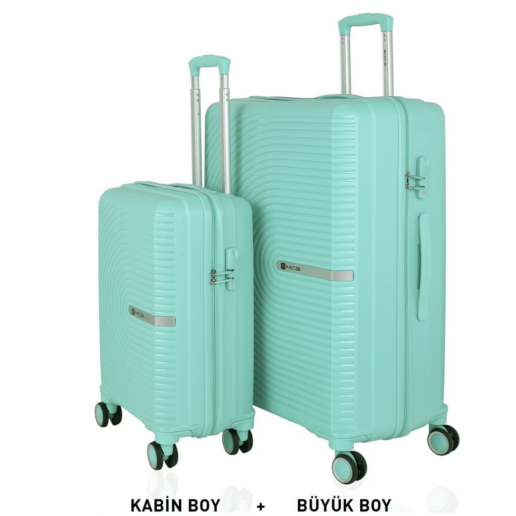 MÇS Bavul Büyük ve Kabin 2li Set Kırılmaz Silikon Valiz V374 Mint Yeşili