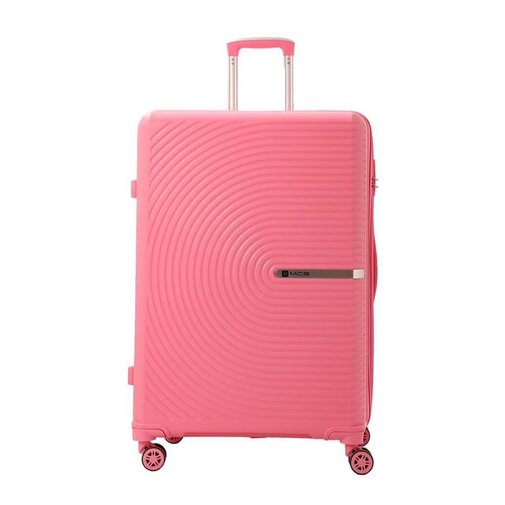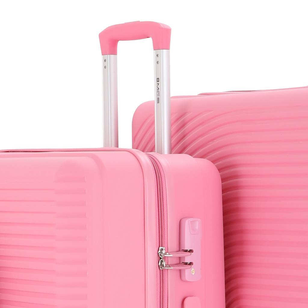 MÇS Bavul Büyük ve Kabin 2li Set Kırılmaz Silikon Valiz V374 Pembe