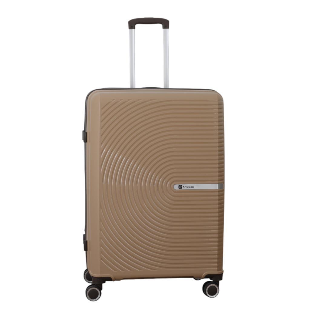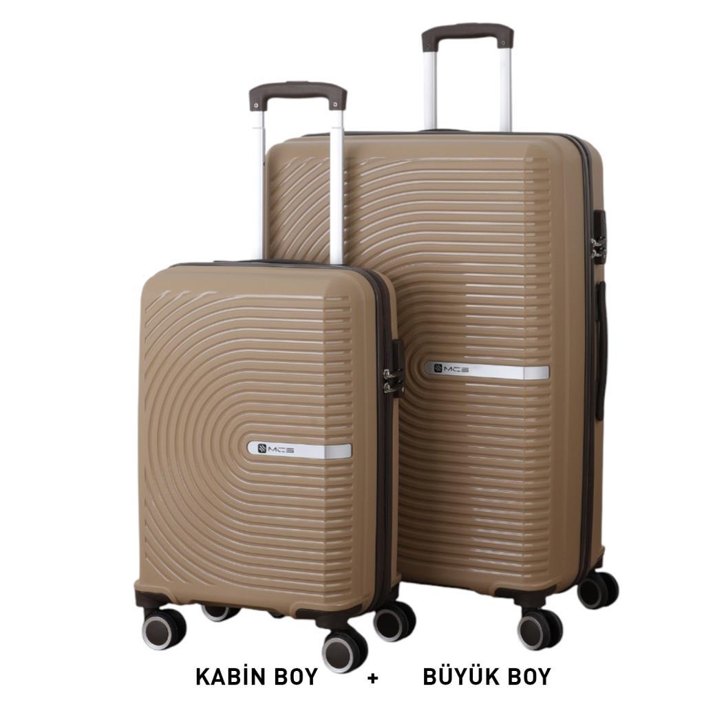 MÇS Bavul Büyük ve Kabin 2li Set Kırılmaz Silikon Valiz V374 Şampanya/AcıKahve