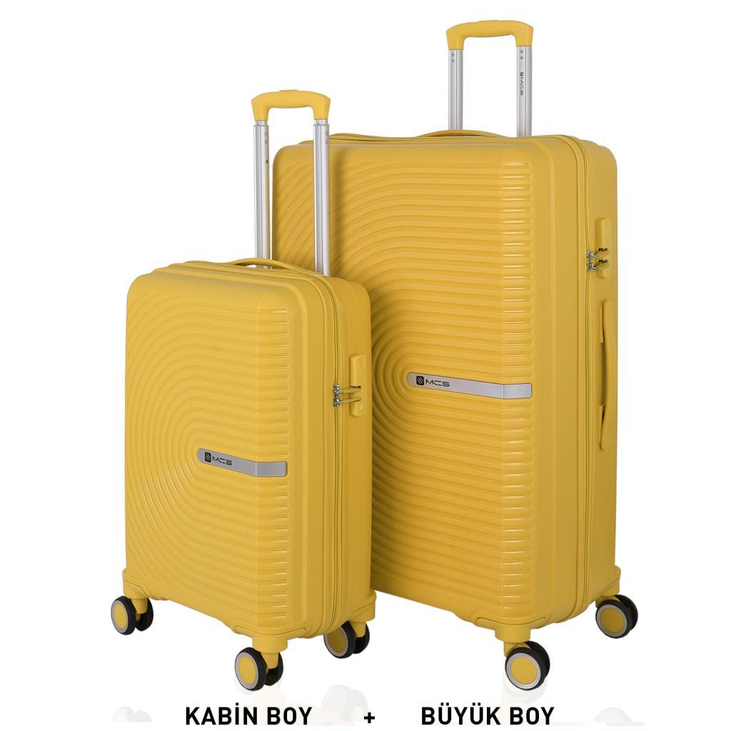 MÇS Bavul Büyük ve Kabin 2li Set Kırılmaz Silikon Valiz V374 Sarı