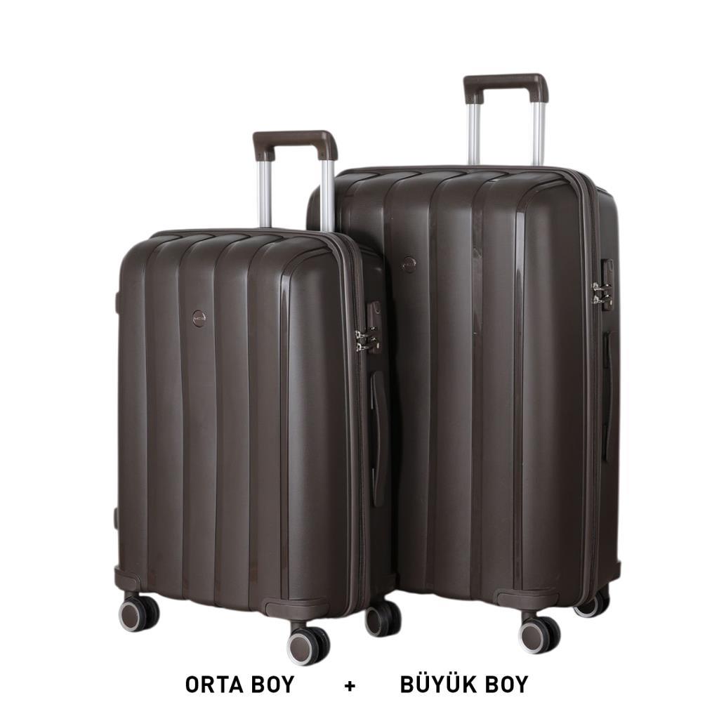 MÇS Bavul Büyük ve Orta 2li Set Kırılmaz Silikon Valiz V305 Acı Kahve