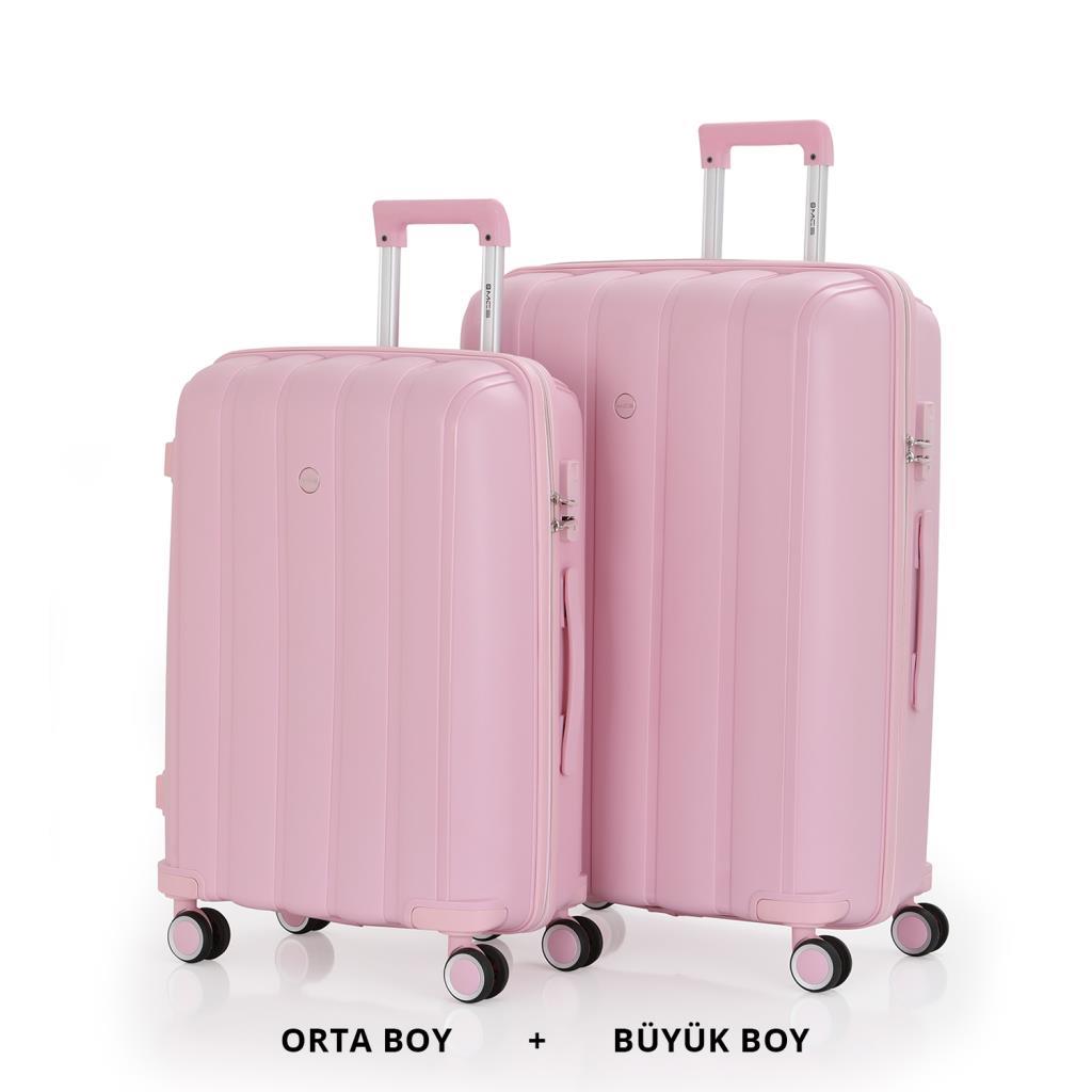 MÇS Bavul Büyük ve Orta 2li Set Kırılmaz Silikon Valiz V305 Pudra
