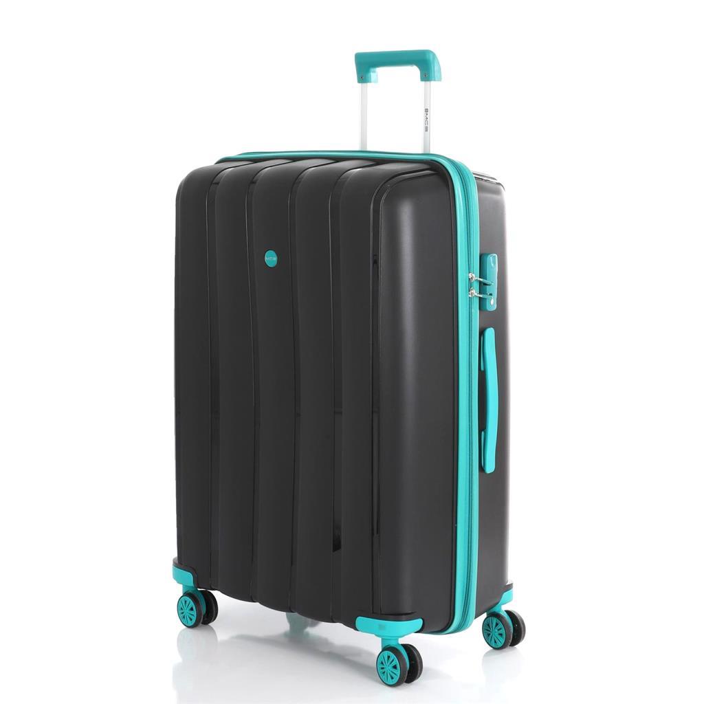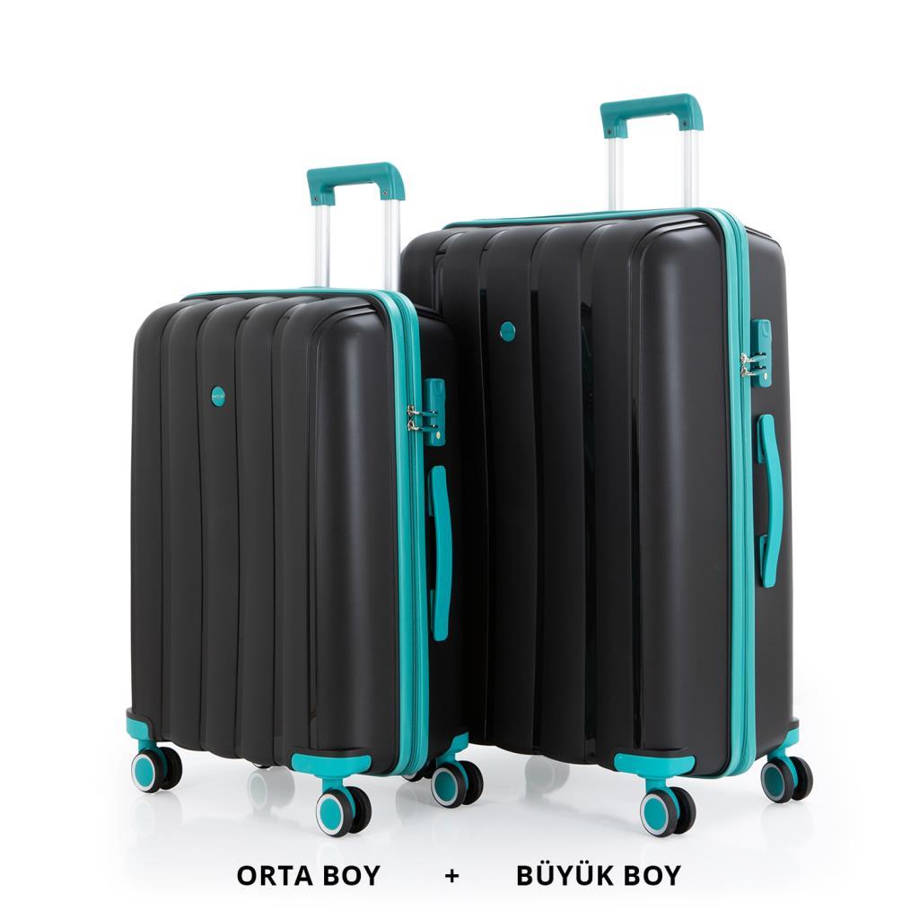 MÇS Bavul Büyük ve Orta 2li Set Kırılmaz Silikon Valiz V305 Siyah/CamGöbeği