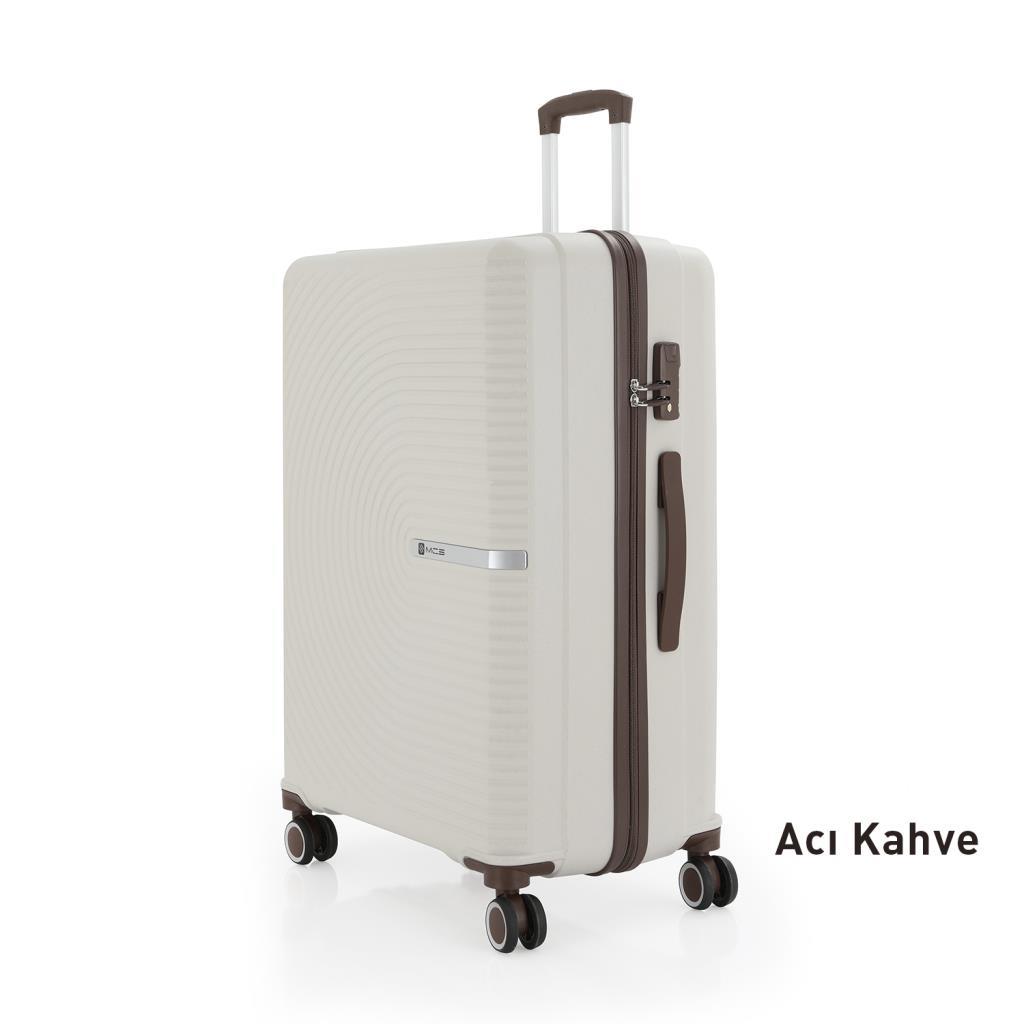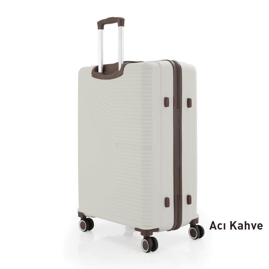 MÇS Bavul Büyük ve Orta 2li Set Kırılmaz Silikon Valiz V374 Kemik/AcıKahve