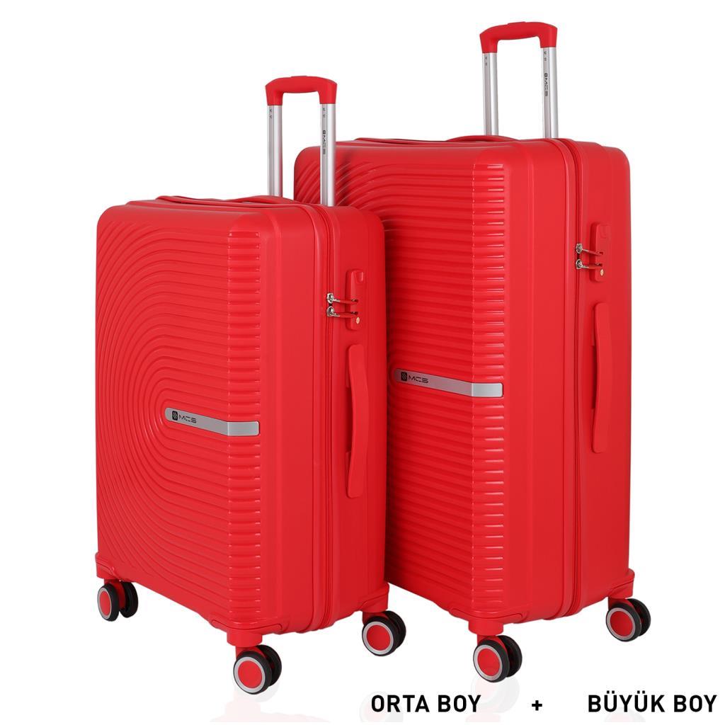 MÇS Bavul Büyük ve Orta 2li Set Kırılmaz Silikon Valiz V374 Kırmızı