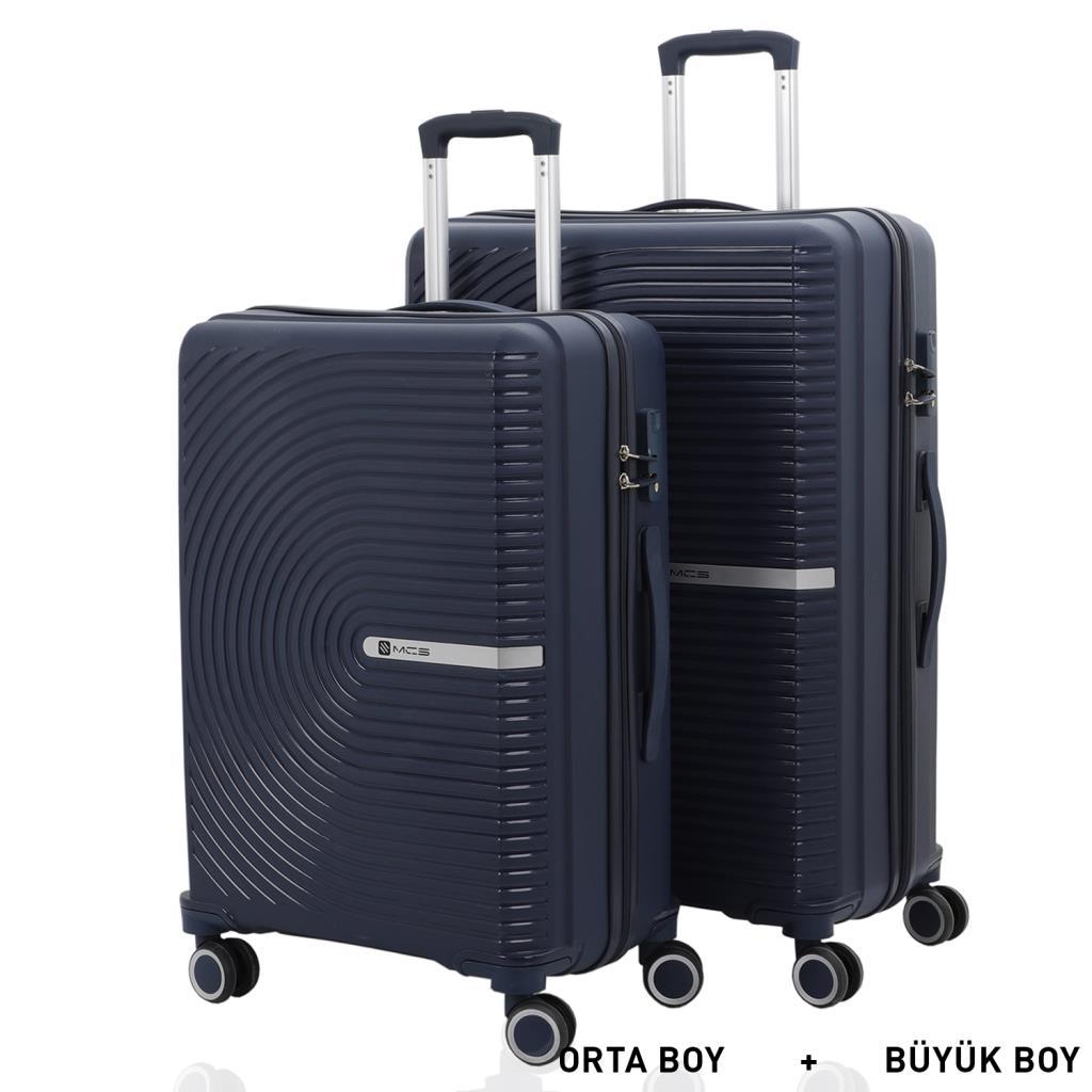 MÇS Bavul Büyük ve Orta 2li Set Kırılmaz Silikon Valiz V374 Lacivert