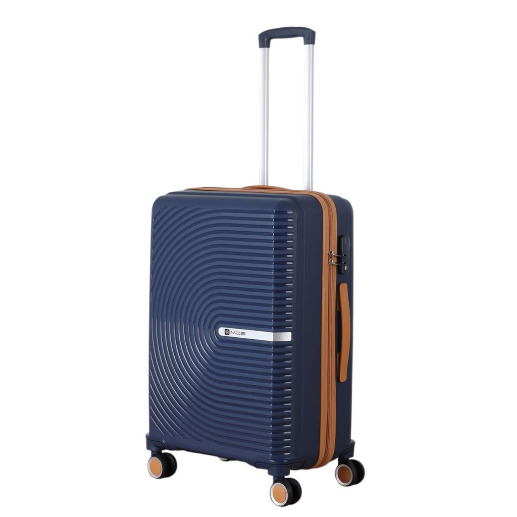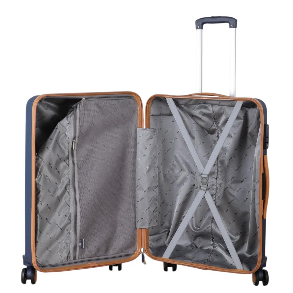 MÇS Bavul Büyük ve Orta 2li Set Kırılmaz Silikon Valiz V374 Lacivert/Hardal