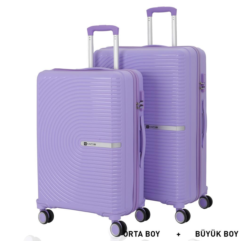 MÇS Bavul Büyük ve Orta 2li Set Kırılmaz Silikon Valiz V374 Lila