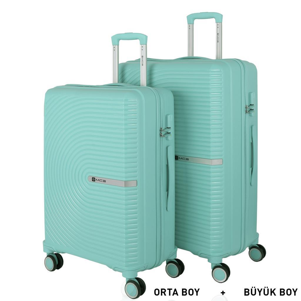 MÇS Bavul Büyük ve Orta 2li Set Kırılmaz Silikon Valiz V374 Mint Yeşili
