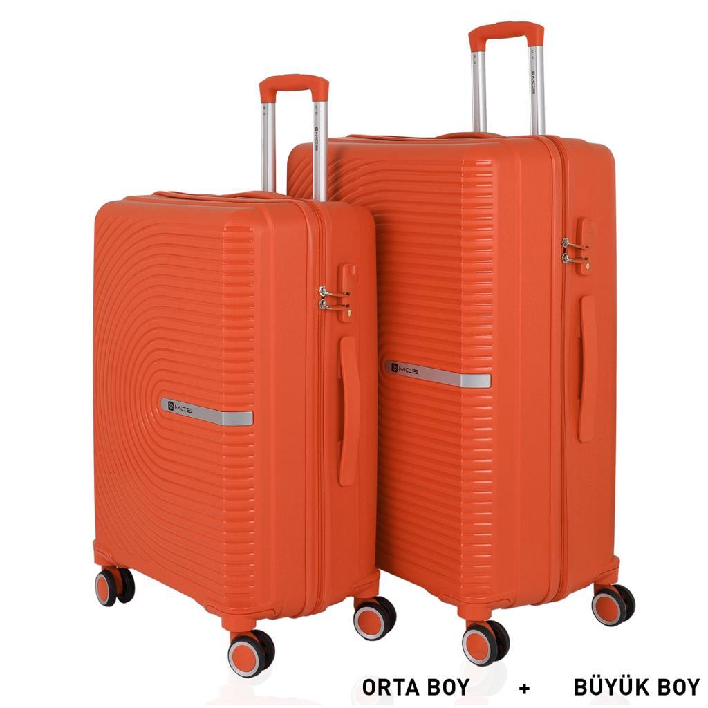 MÇS Bavul Büyük ve Orta 2li Set Kırılmaz Silikon Valiz V374 Orange
