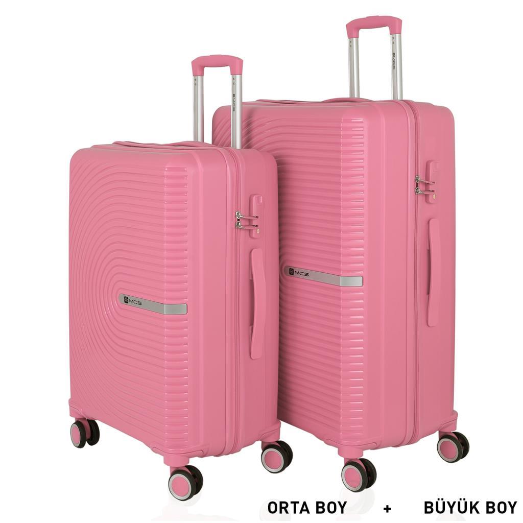 MÇS Bavul Büyük ve Orta 2li Set Kırılmaz Silikon Valiz V374 Pembe