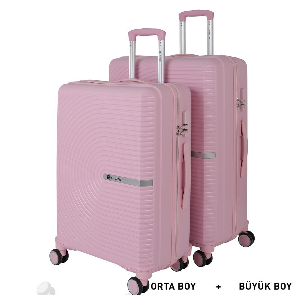MÇS Bavul Büyük ve Orta 2li Set Kırılmaz Silikon Valiz V374 Pudra