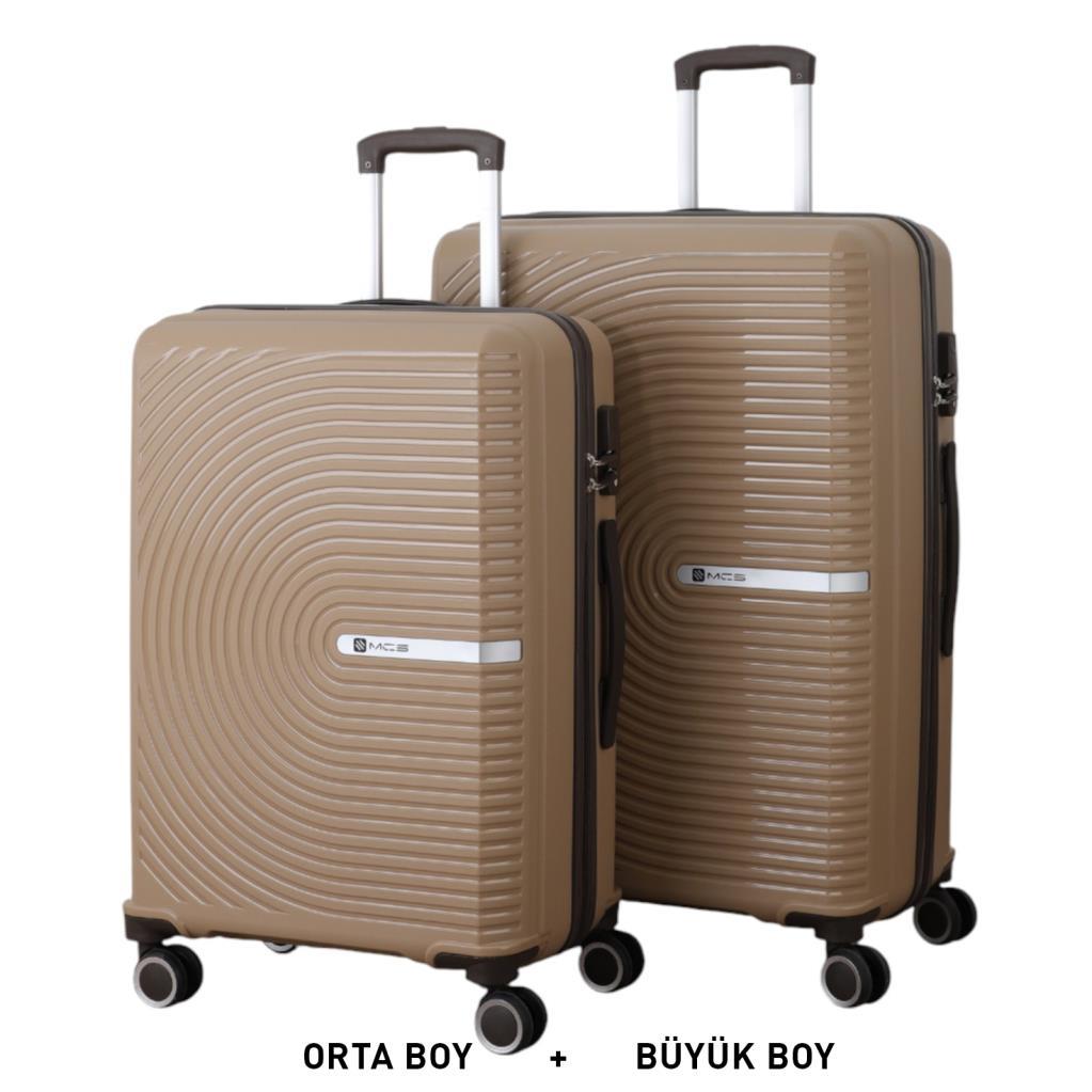 MÇS Bavul Büyük ve Orta 2li Set Kırılmaz Silikon Valiz V374 Şampanya/AcıKahve