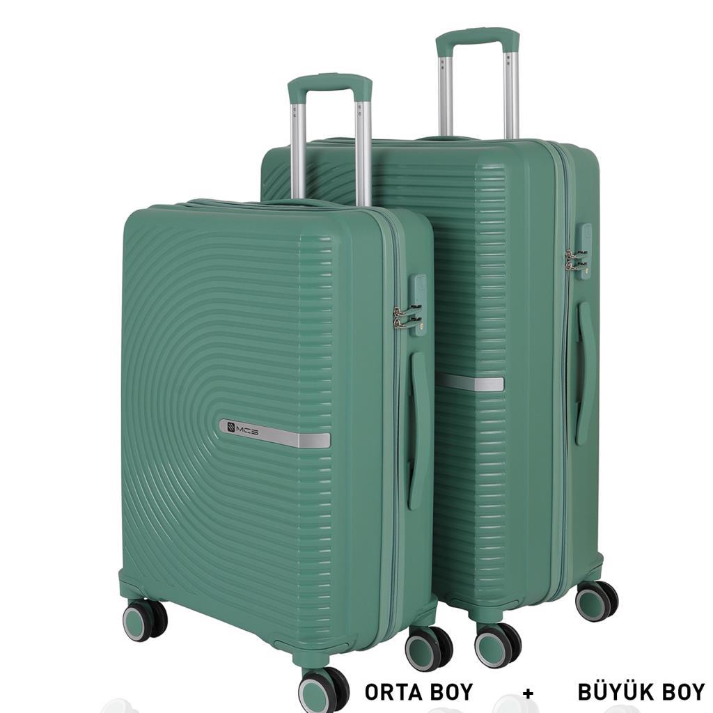 MÇS Bavul Büyük ve Orta 2li Set Kırılmaz Silikon Valiz V374 Su Yeşili