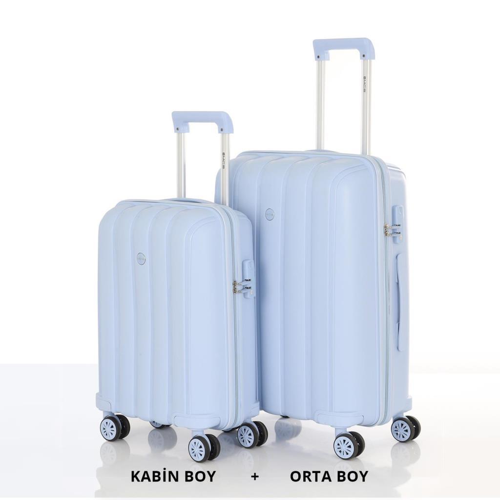 MÇS Bavul Orta ve Kabin 2li Set Kırılmaz Silikon Valiz V305 Bebe Mavi