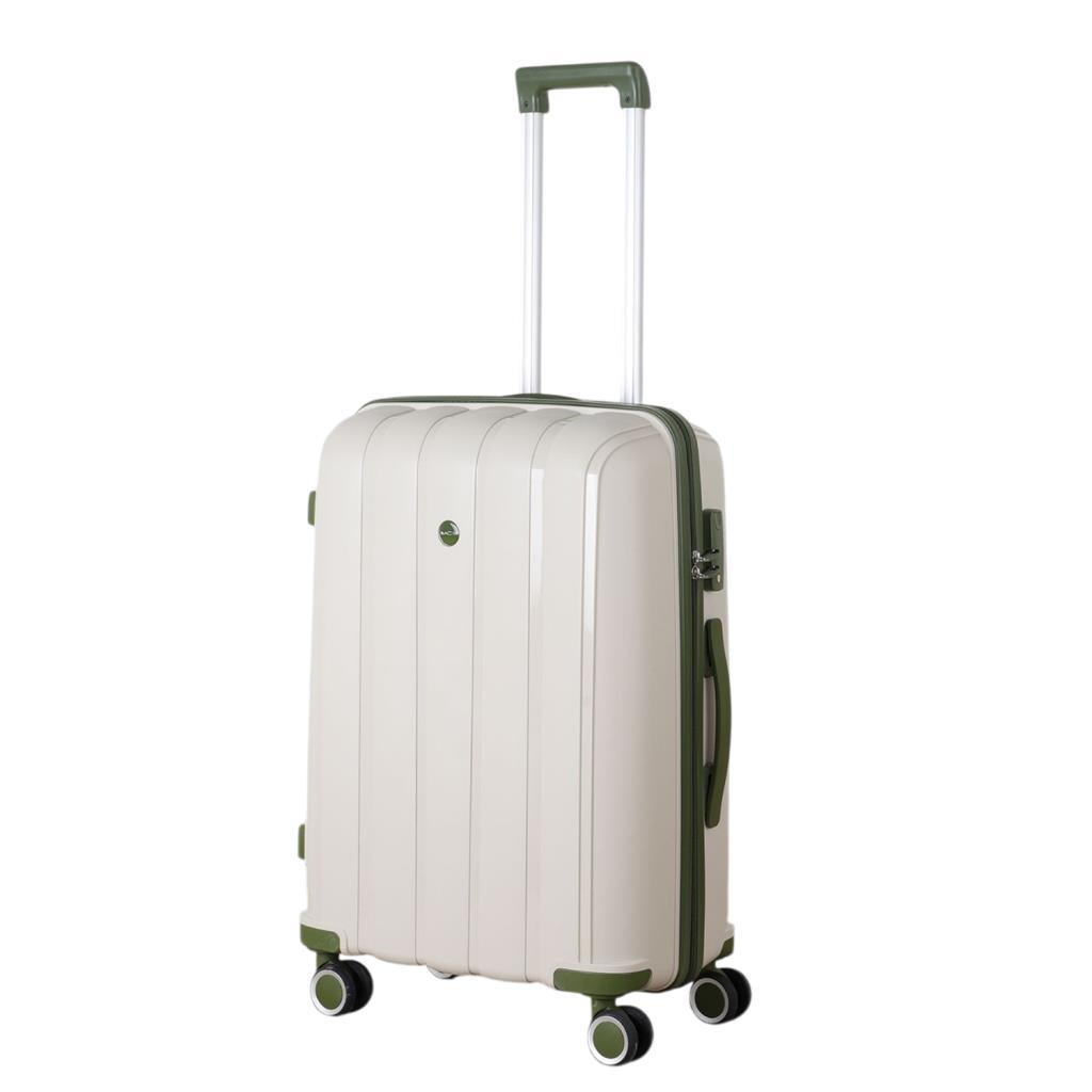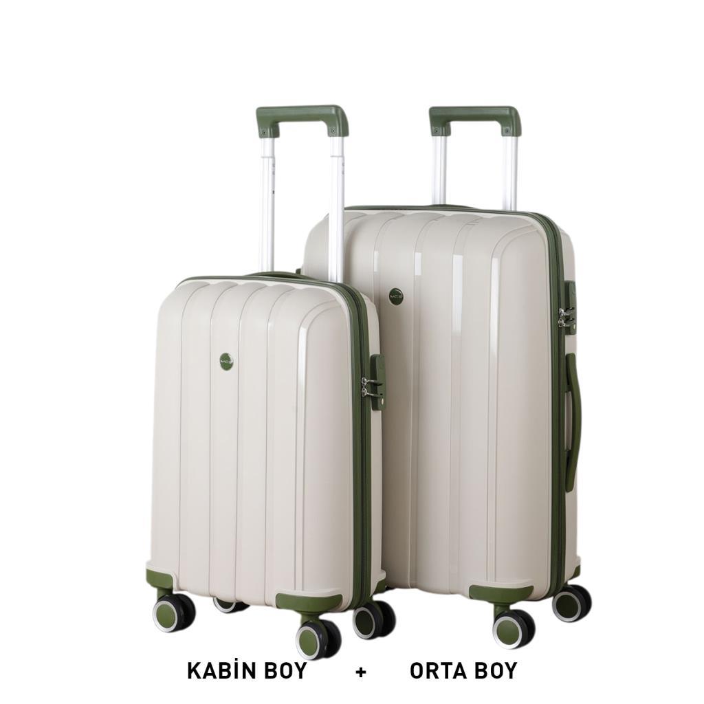 MÇS Bavul Orta ve Kabin 2li Set Kırılmaz Silikon Valiz V305 Kemik/Haki