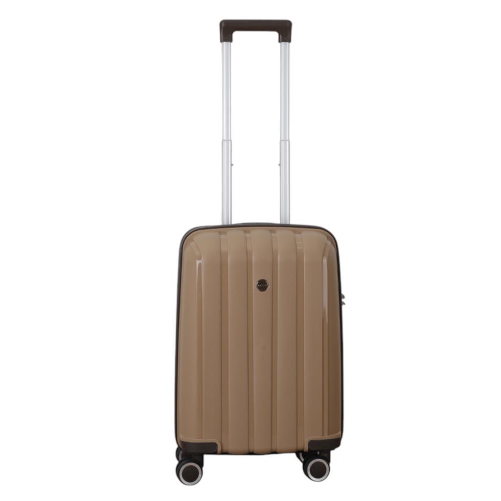 MÇS Bavul Orta ve Kabin 2li Set Kırılmaz Silikon Valiz V305 Şampanya/AcıKahve