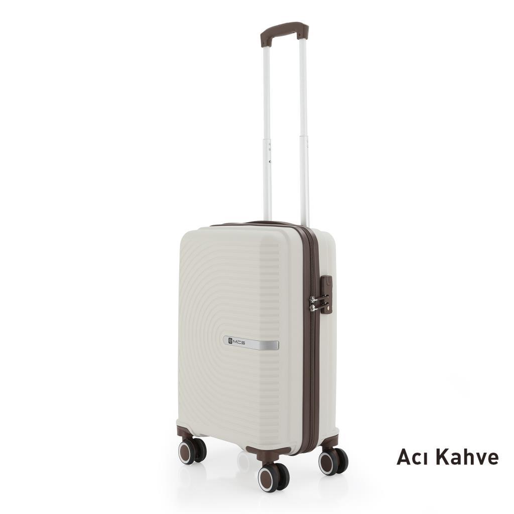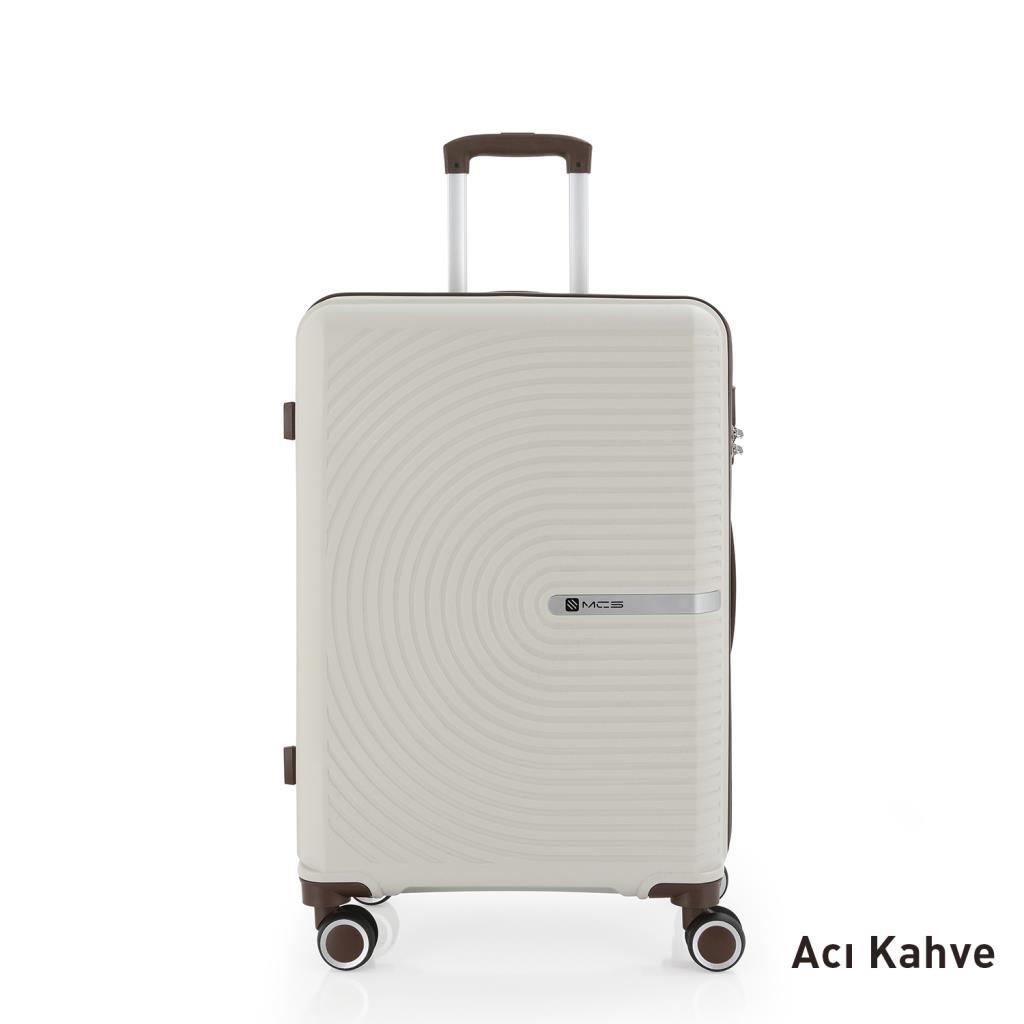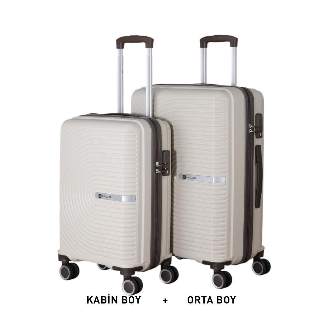 MÇS Bavul Orta ve Kabin 2li Set Kırılmaz Silikon Valiz V374 Kemik/AcıKahve