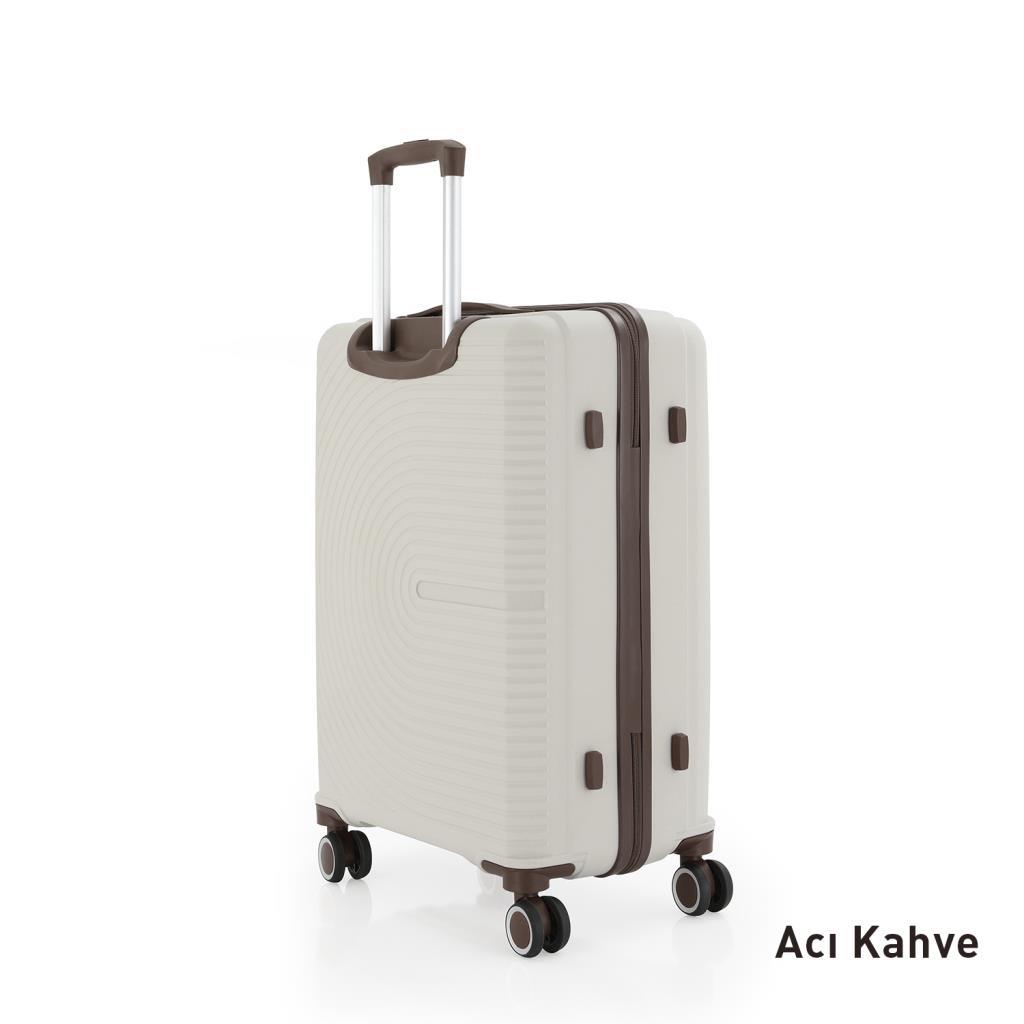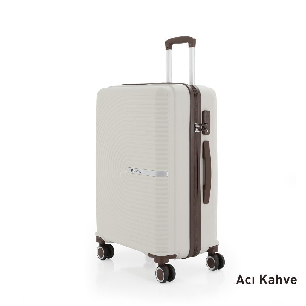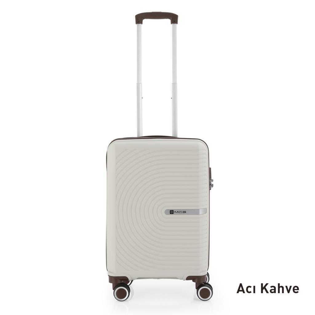 MÇS Bavul Orta ve Kabin 2li Set Kırılmaz Silikon Valiz V374 Kemik/AcıKahve