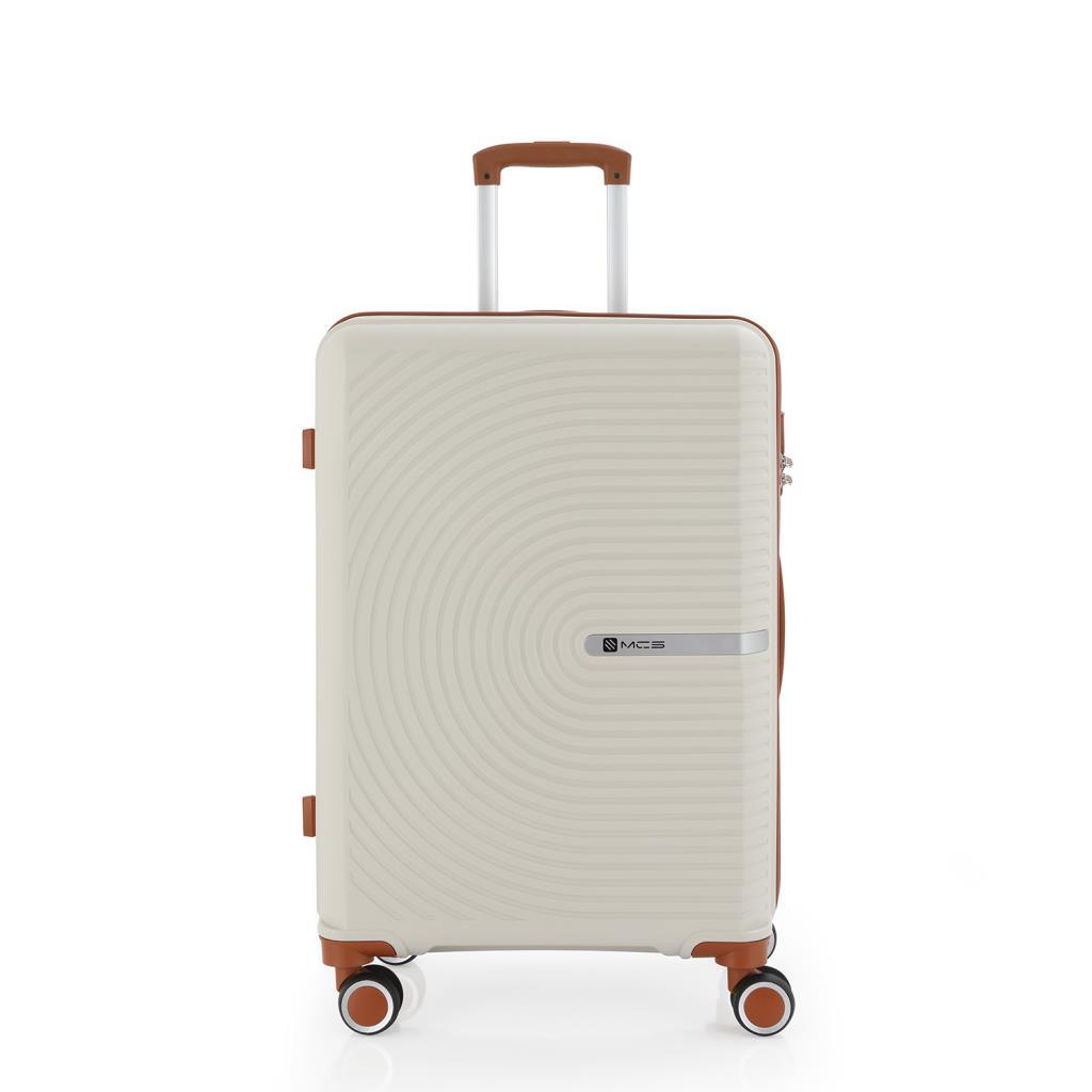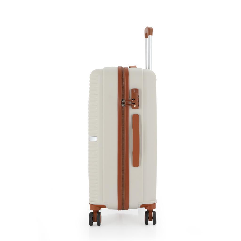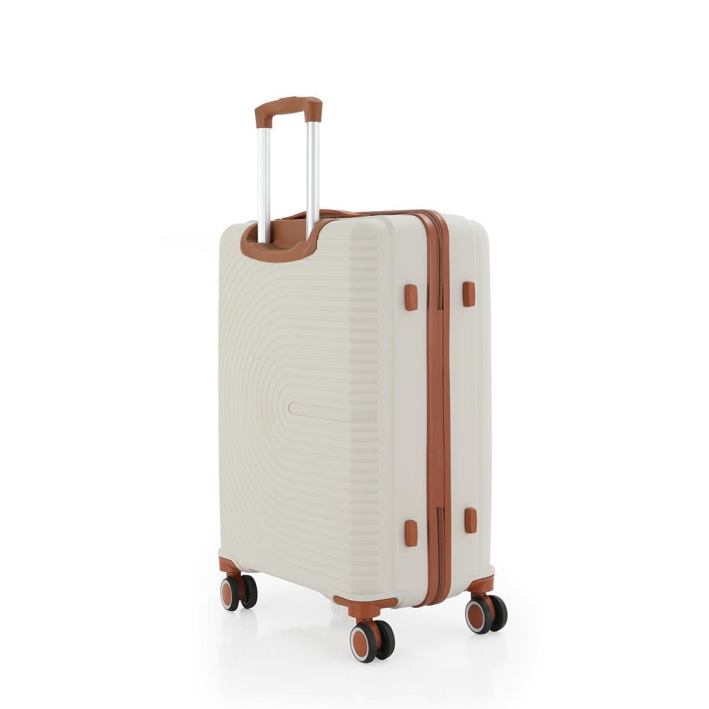 MÇS Bavul Orta ve Kabin 2li Set Kırılmaz Silikon Valiz V374 Kemik/Kahverengi