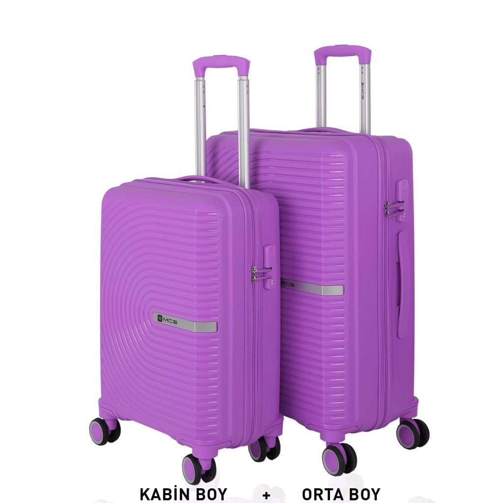 MÇS Bavul Orta ve Kabin 2li Set Kırılmaz Silikon Valiz V374 Mor