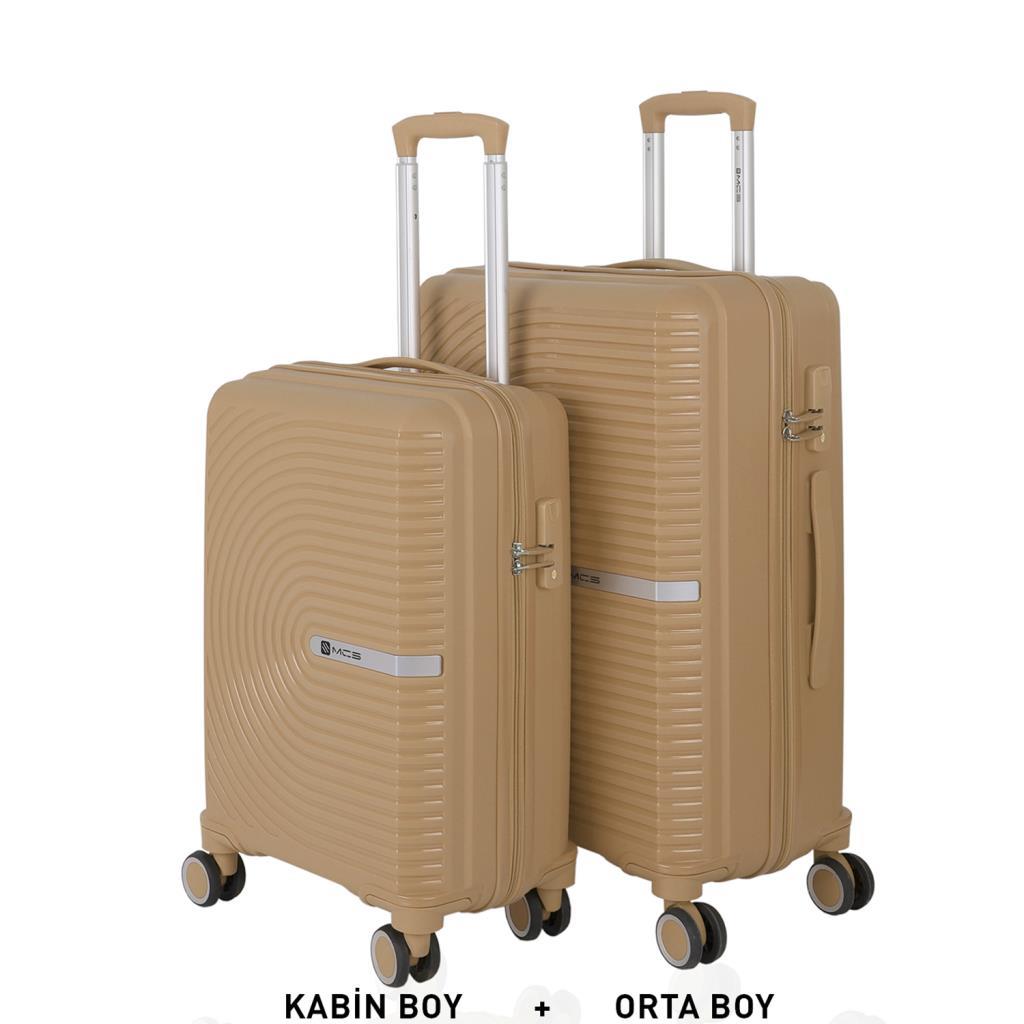 MÇS Bavul Orta ve Kabin 2li Set Kırılmaz Silikon Valiz V374 Şampanya